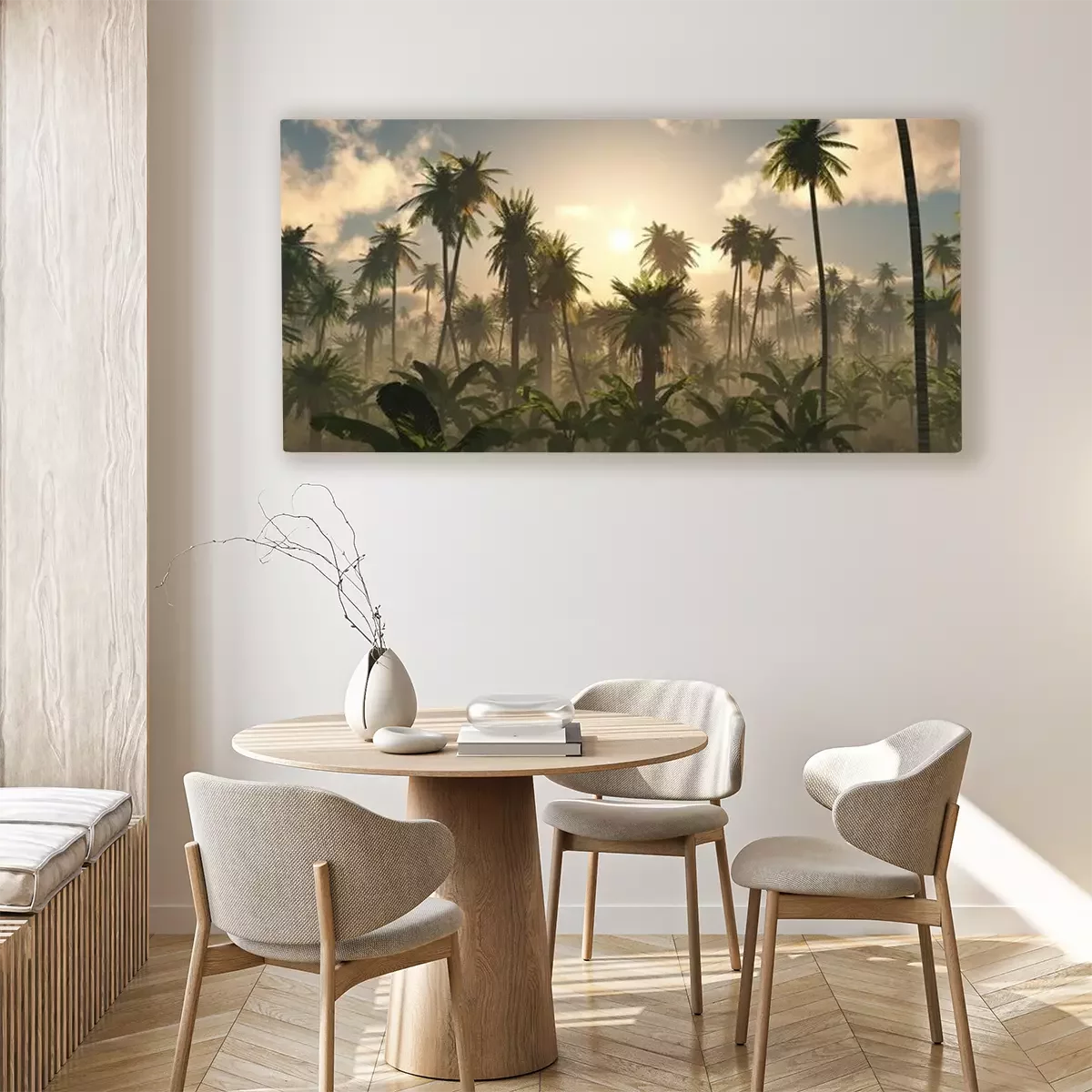 De print wordt aangebracht op hoogwaardig canvas dat op een schildersweefgetouw (spieraam) wordt gespannen. Omdat de print de zijranden bedekt, hoeft het ontwerp niet met een extra kader te worden omlijst. Wij raden ook composities aan die uit meerdere foto's bestaan en zo een coherente compositie vormen.