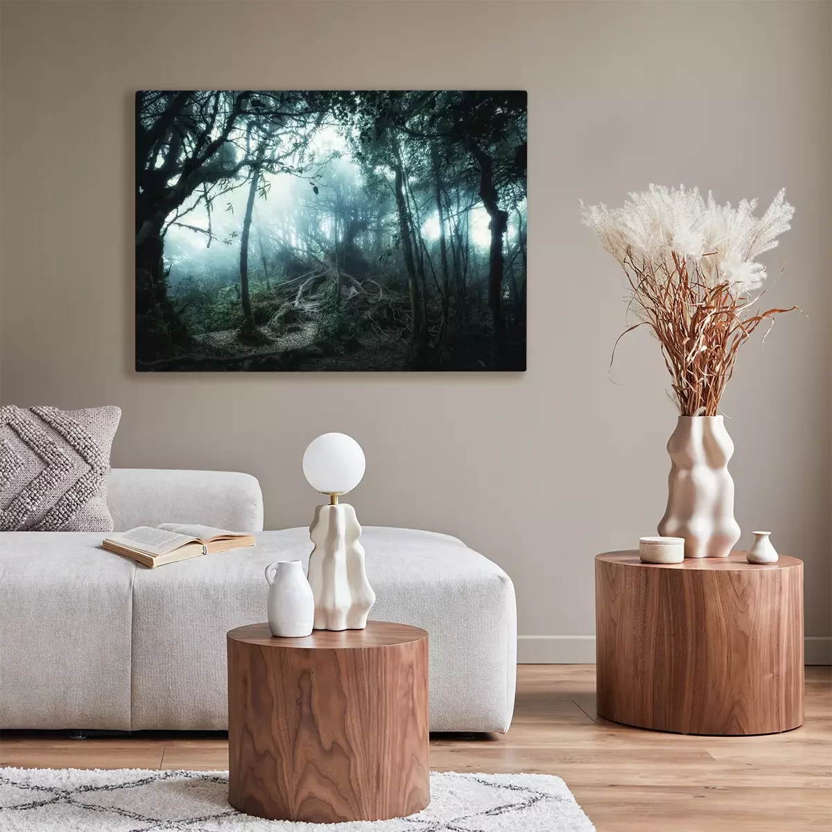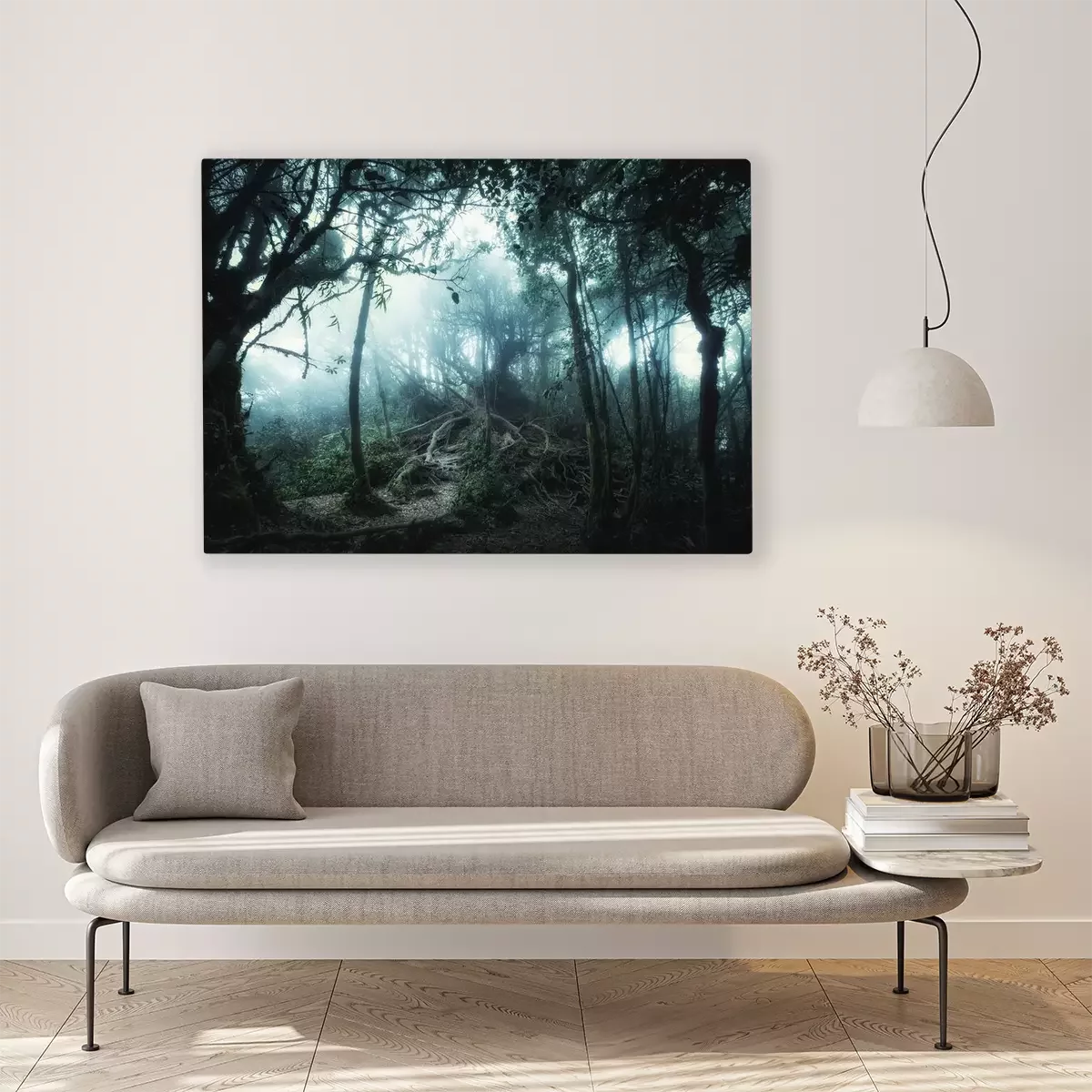 De print wordt aangebracht op hoogwaardig canvas dat op een schildersweefgetouw (spieraam) wordt gespannen. Omdat de print de zijranden bedekt, hoeft het ontwerp niet met een extra kader te worden omlijst. Wij raden ook composities aan die uit meerdere foto's bestaan en zo een coherente compositie vormen.