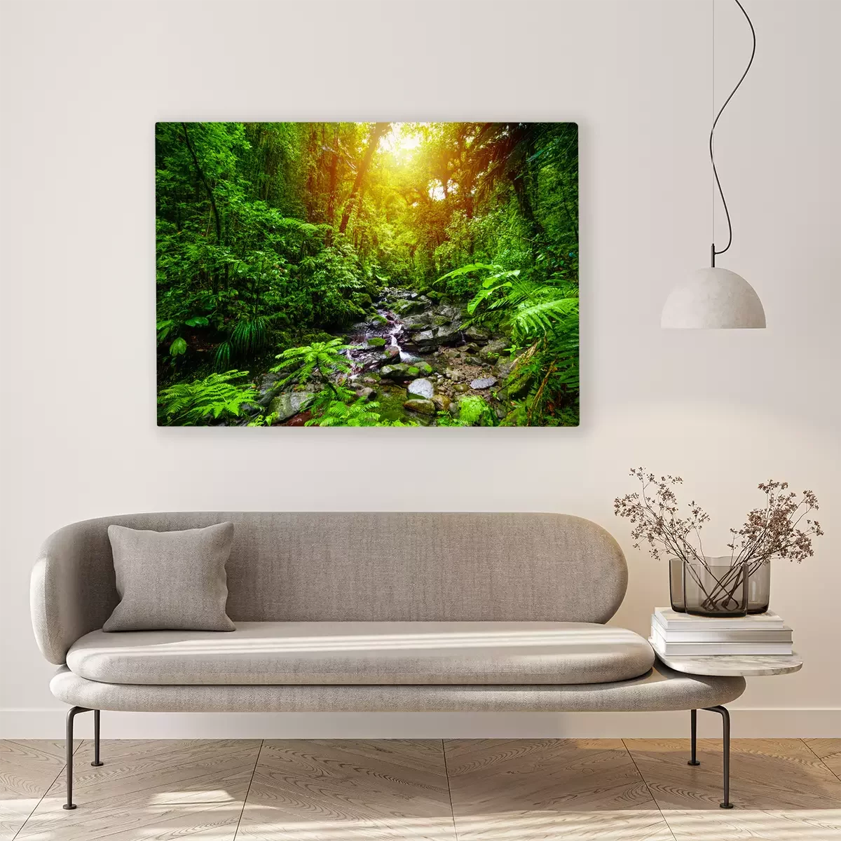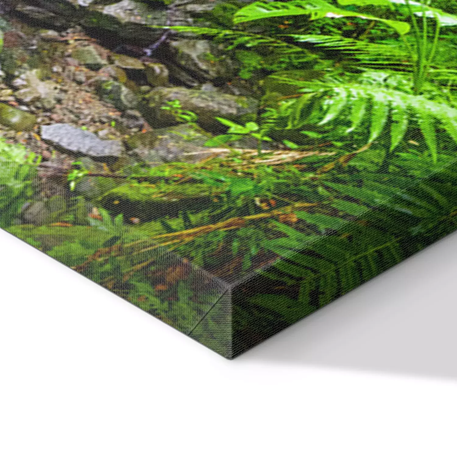 De print wordt aangebracht op hoogwaardig canvas dat op een schildersweefgetouw (spieraam) wordt gespannen. Omdat de print de zijranden bedekt, hoeft het ontwerp niet met een extra kader te worden omlijst. Wij raden ook composities aan die uit meerdere foto's bestaan en zo een coherente compositie vormen.