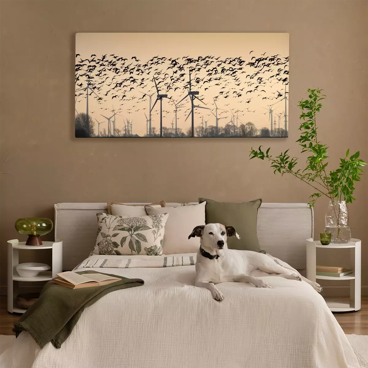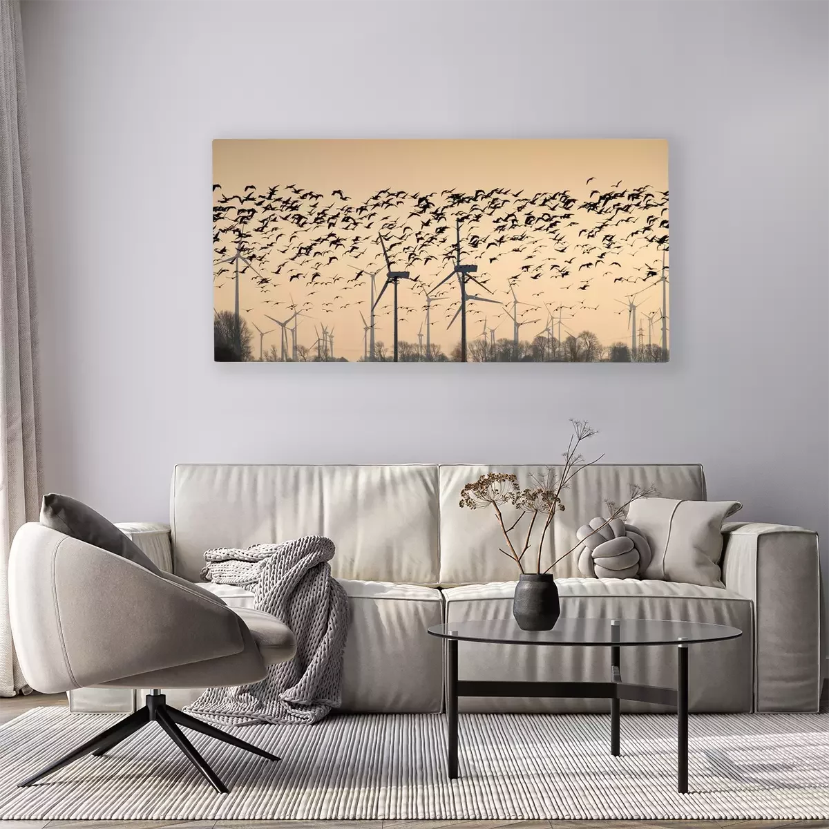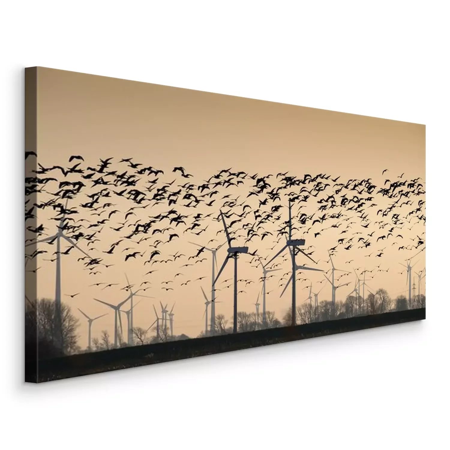 Canvas Wildgänse vor einem Windpark, trekvogels, Ostfriesland, 18012.jpg