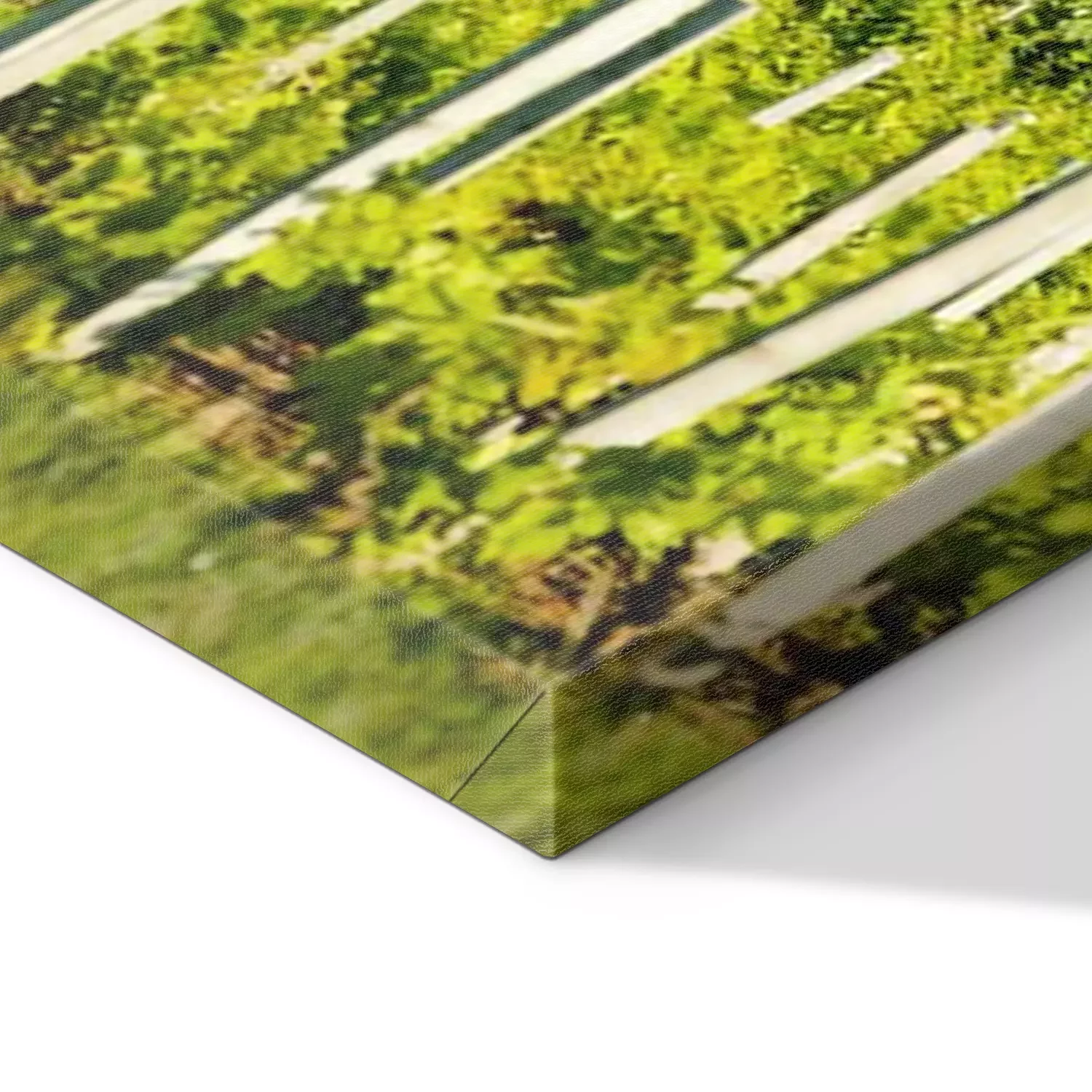 De print wordt aangebracht op hoogwaardig canvas dat op een schildersweefgetouw (spieraam) wordt gespannen. Omdat de print de zijranden bedekt, hoeft het ontwerp niet met een extra kader te worden omlijst. Wij raden ook composities aan die uit meerdere foto's bestaan en zo een coherente compositie vormen.