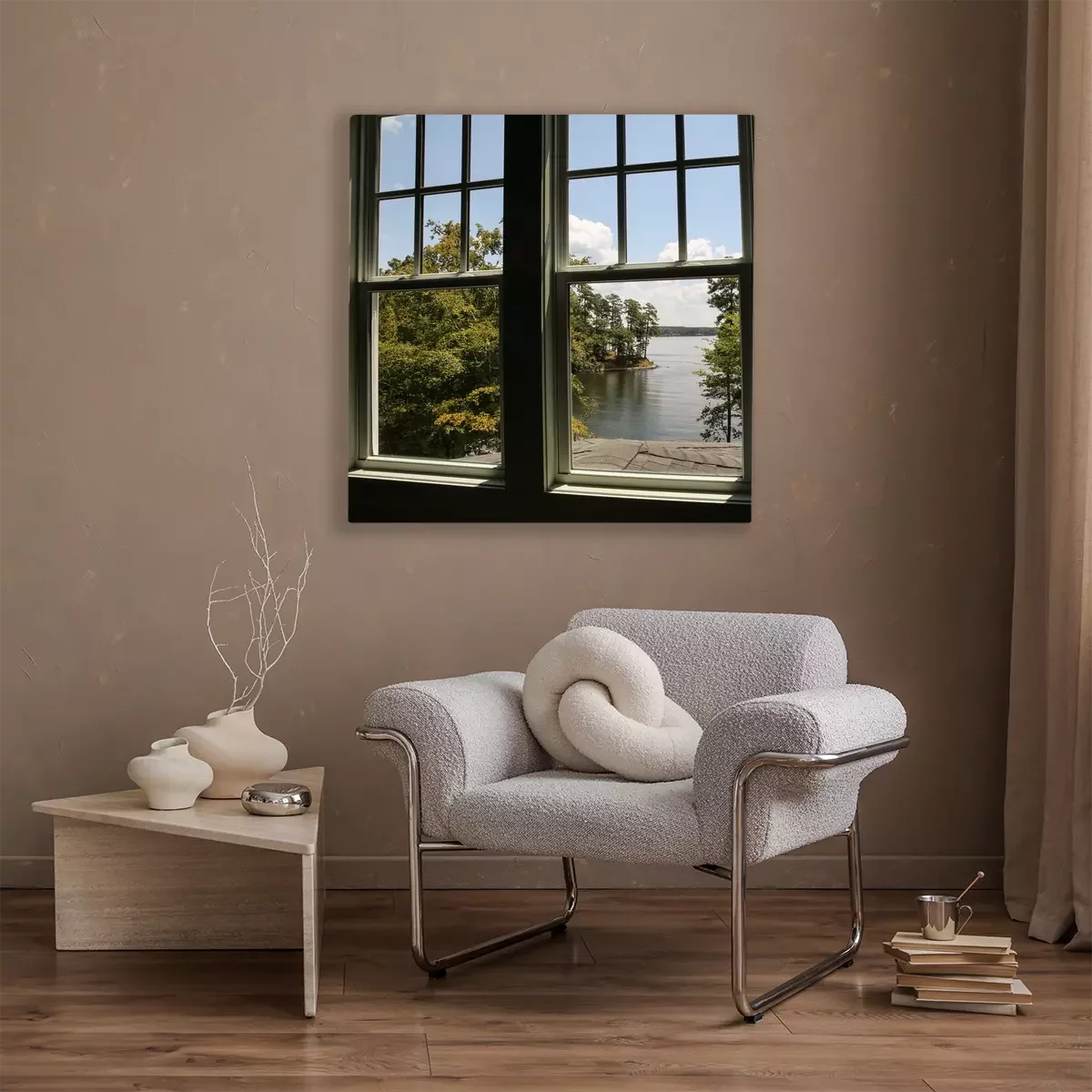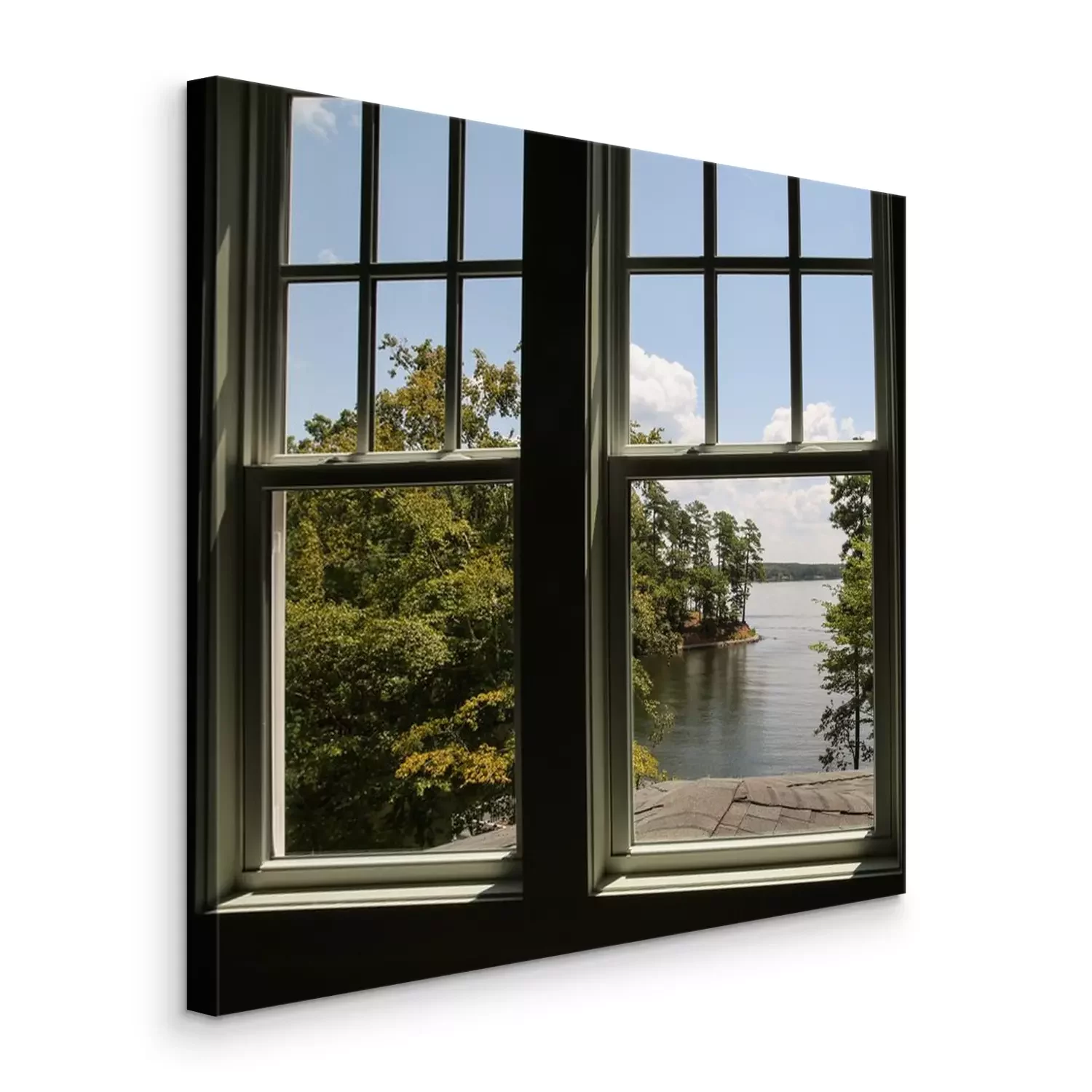 Canvas Window with view of a lake in the distance