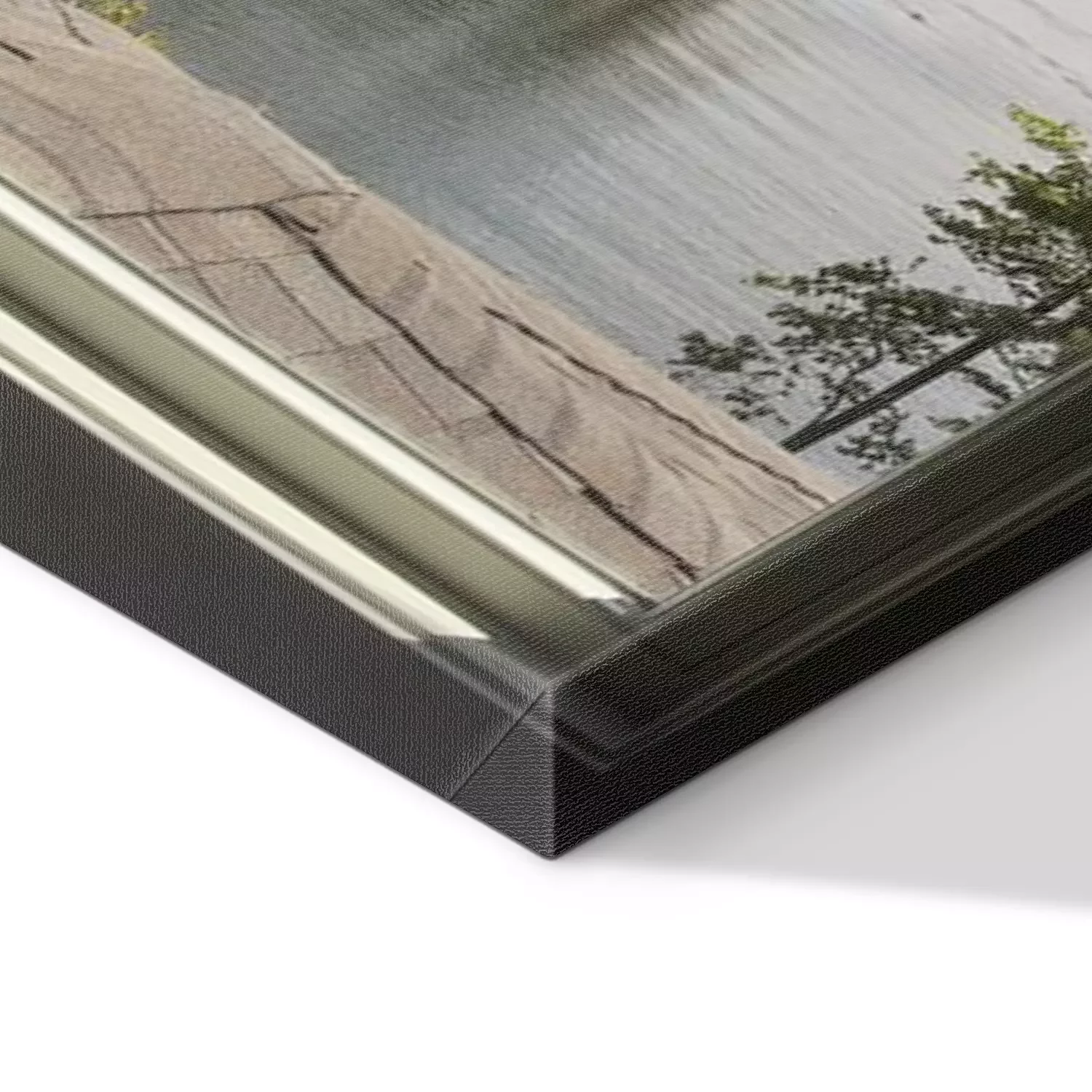 De print wordt aangebracht op hoogwaardig canvas dat op een schildersweefgetouw (spieraam) wordt gespannen. Omdat de print de zijranden bedekt, hoeft het ontwerp niet met een extra kader te worden omlijst. Wij raden ook composities aan die uit meerdere foto's bestaan en zo een coherente compositie vormen.