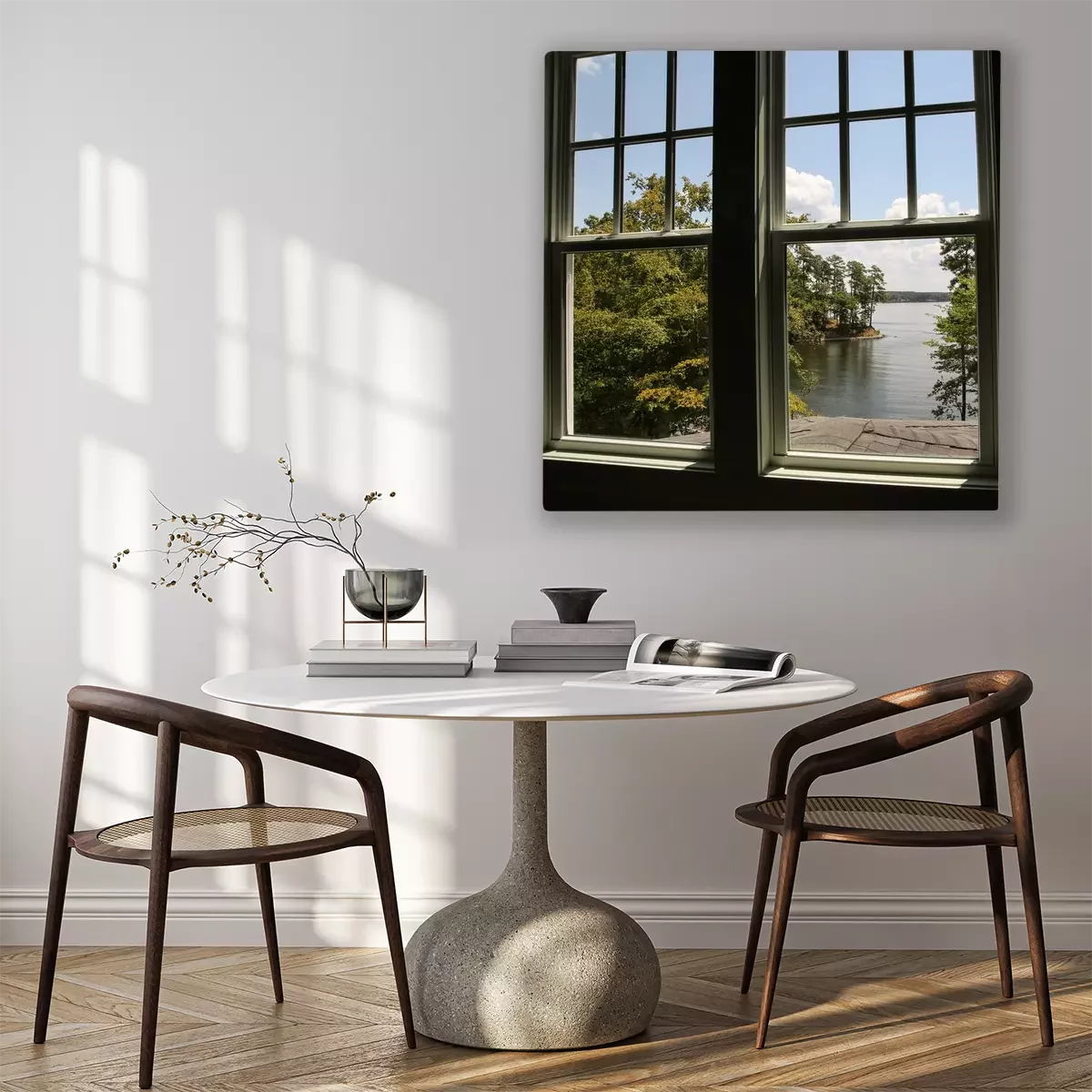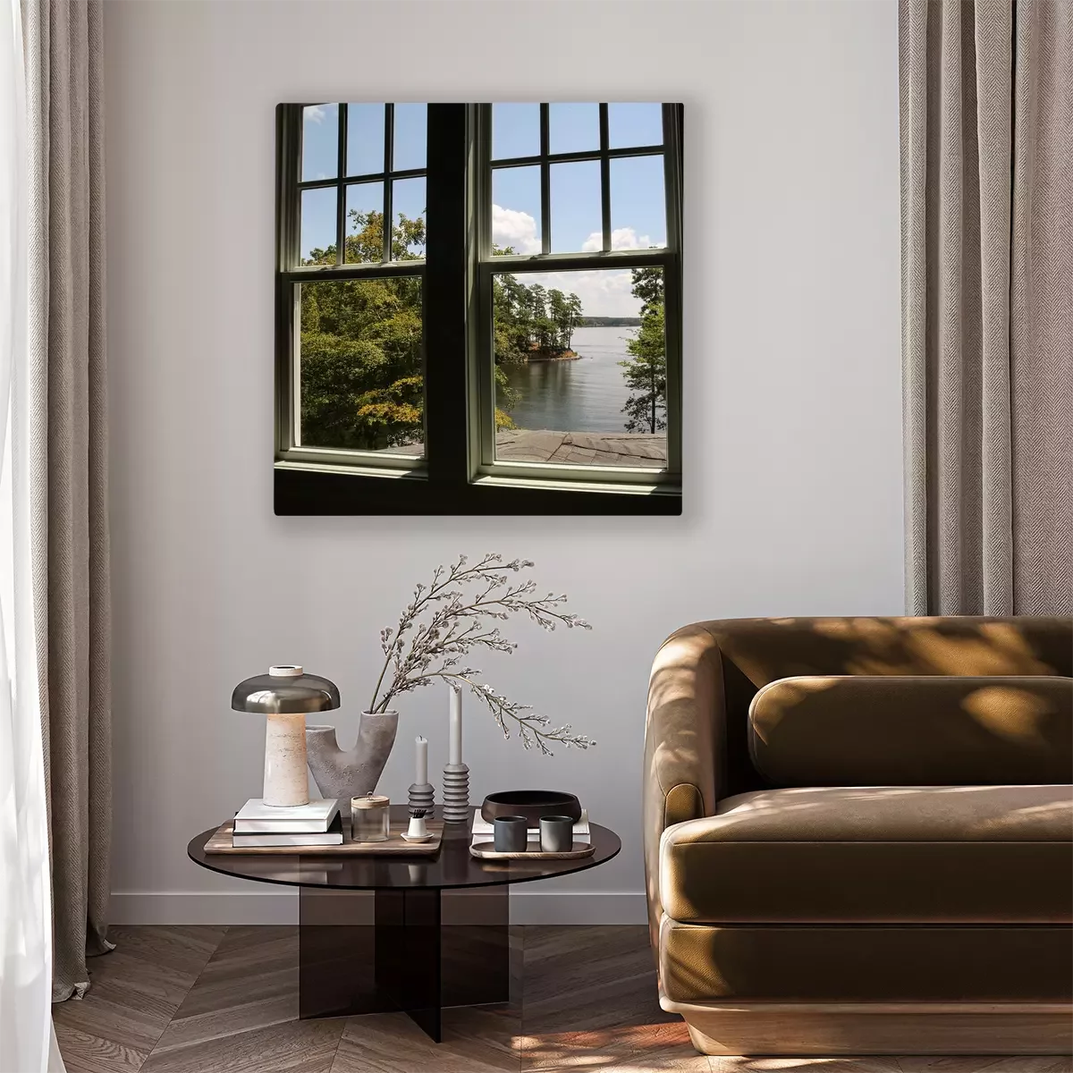 Canvas: Window with view of a lake in the distance