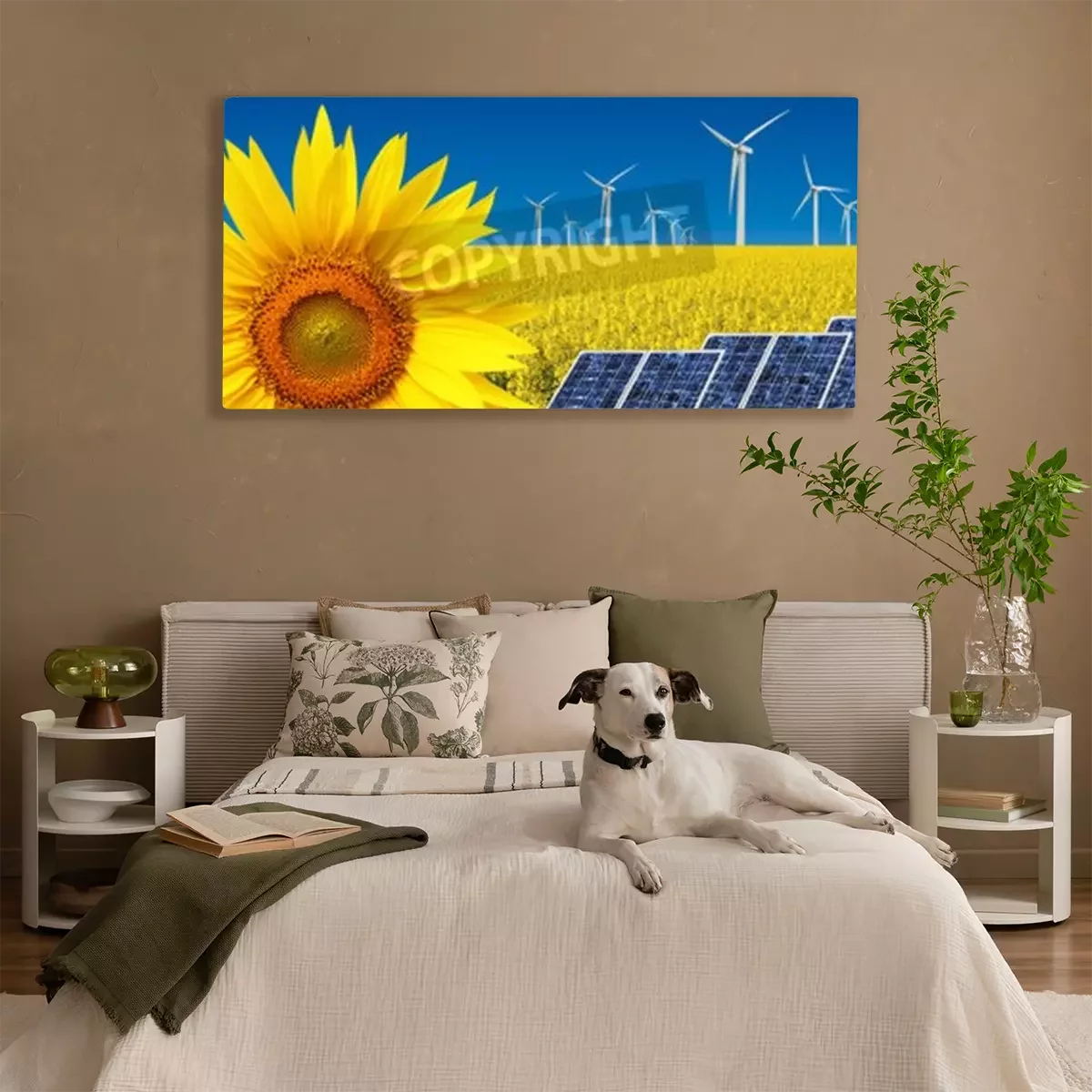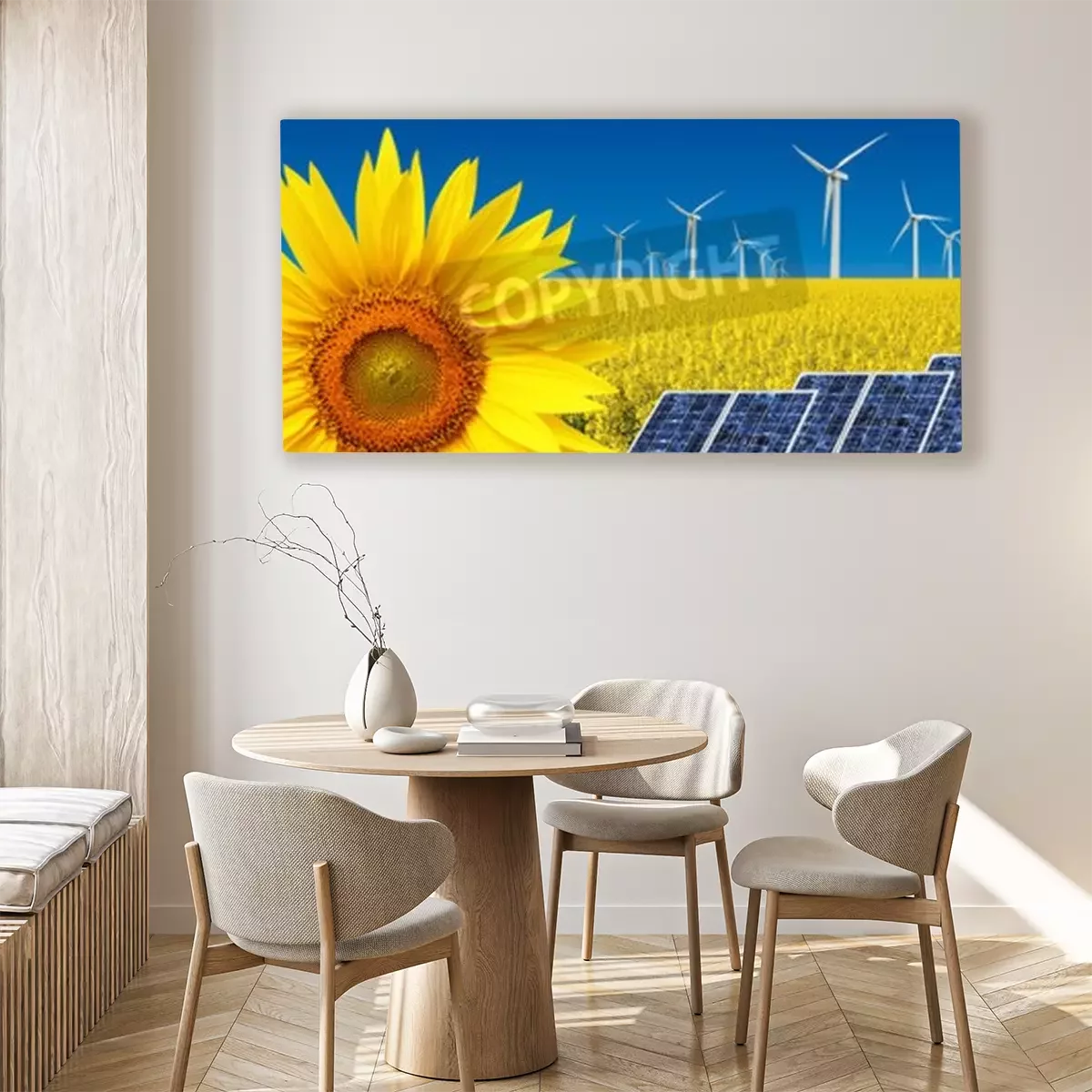 Canvas: Windpark en zonnebloemen