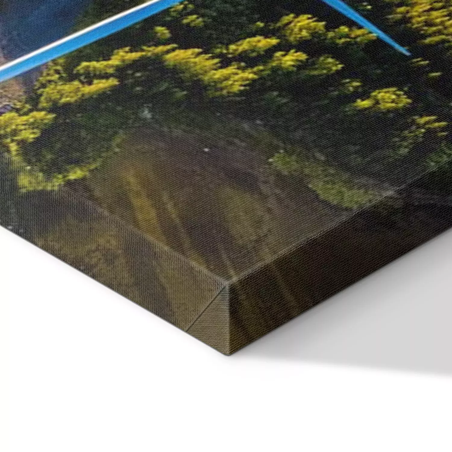 De print wordt aangebracht op hoogwaardig canvas dat op een schildersweefgetouw (spieraam) wordt gespannen. Omdat de print de zijranden bedekt, hoeft het ontwerp niet met een extra kader te worden omlijst. Wij raden ook composities aan die uit meerdere foto's bestaan en zo een coherente compositie vormen.