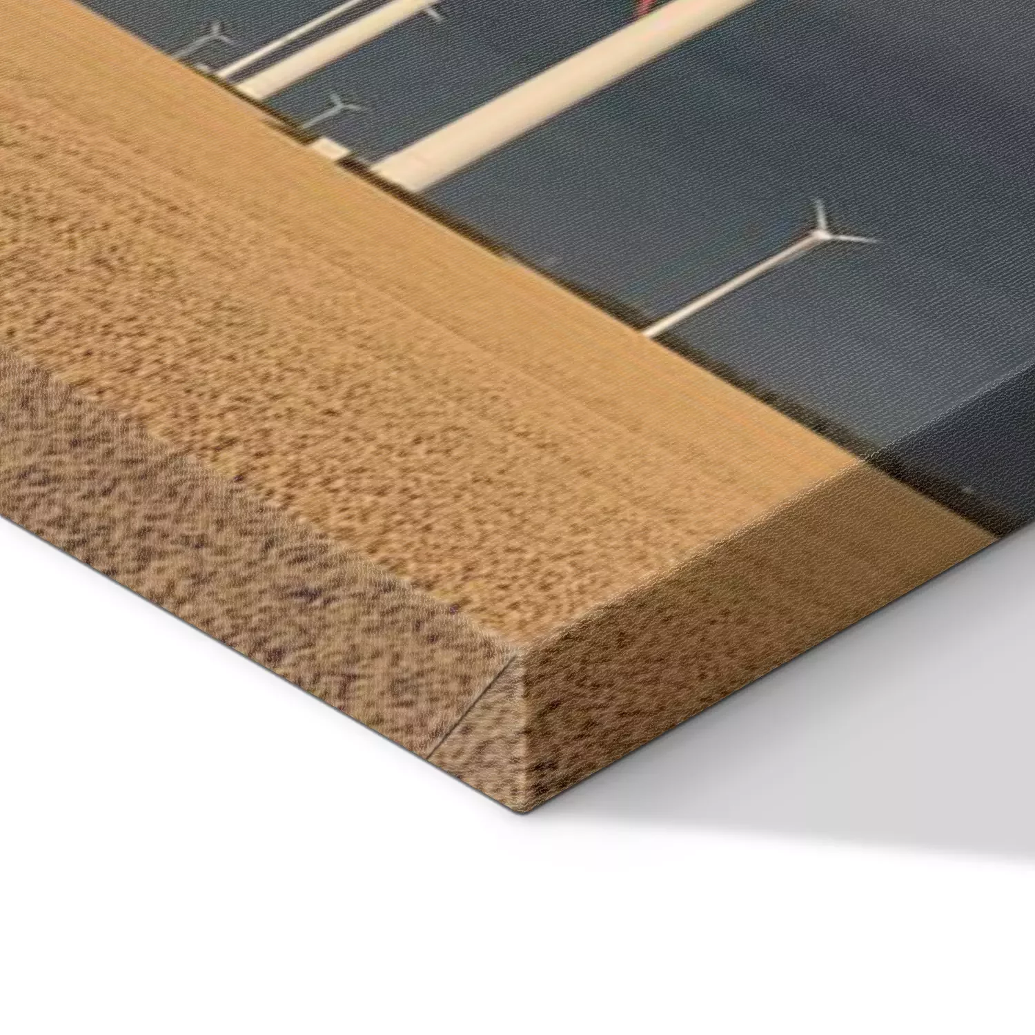 De print wordt aangebracht op hoogwaardig canvas dat op een schildersweefgetouw (spieraam) wordt gespannen. Omdat de print de zijranden bedekt, hoeft het ontwerp niet met een extra kader te worden omlijst. Wij raden ook composities aan die uit meerdere foto's bestaan en zo een coherente compositie vormen.