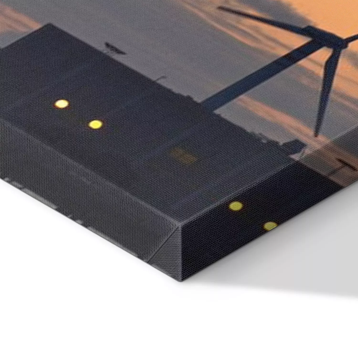 De print wordt aangebracht op hoogwaardig canvas dat op een schildersweefgetouw (spieraam) wordt gespannen. Omdat de print de zijranden bedekt, hoeft het ontwerp niet met een extra kader te worden omlijst. Wij raden ook composities aan die uit meerdere foto's bestaan en zo een coherente compositie vormen.