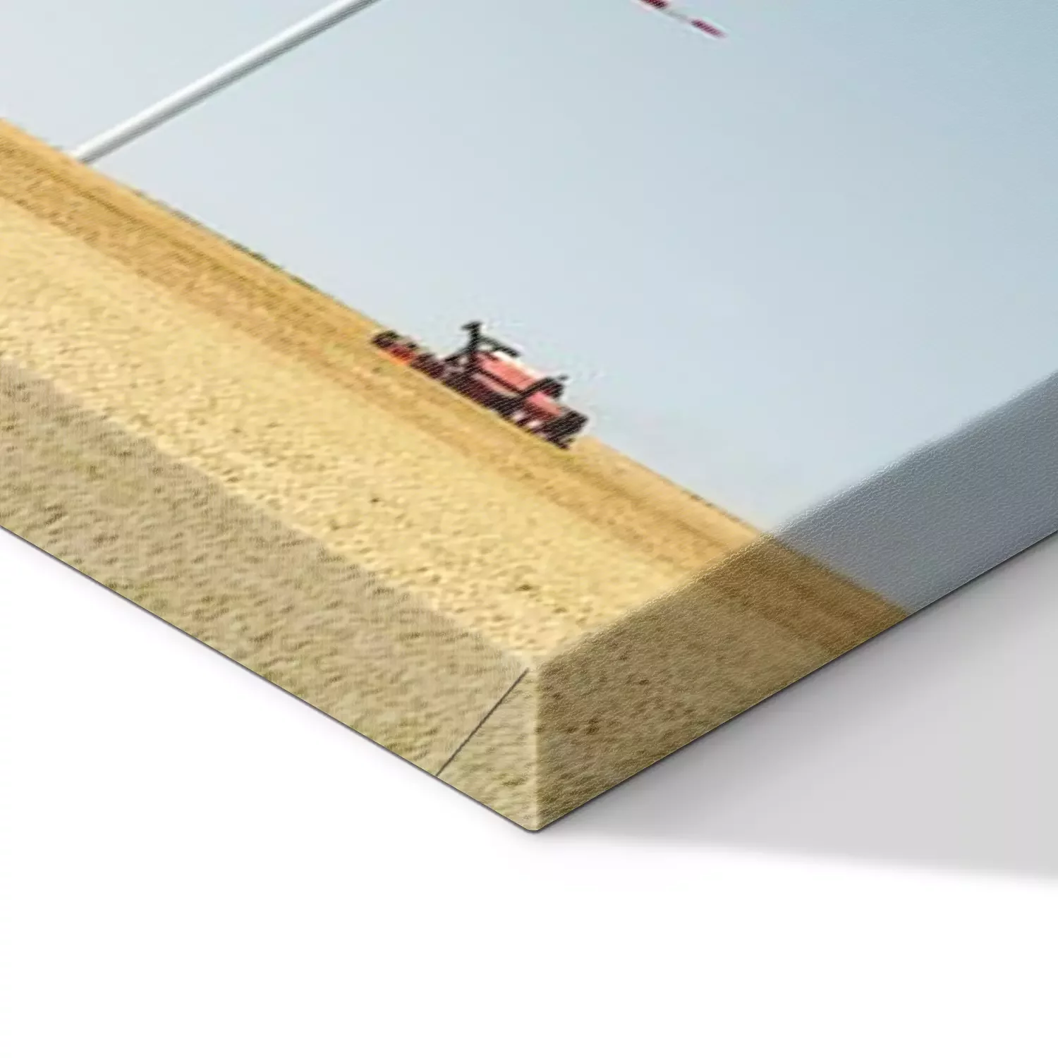 De print wordt aangebracht op hoogwaardig canvas dat op een schildersweefgetouw (spieraam) wordt gespannen. Omdat de print de zijranden bedekt, hoeft het ontwerp niet met een extra kader te worden omlijst. Wij raden ook composities aan die uit meerdere foto's bestaan en zo een coherente compositie vormen.