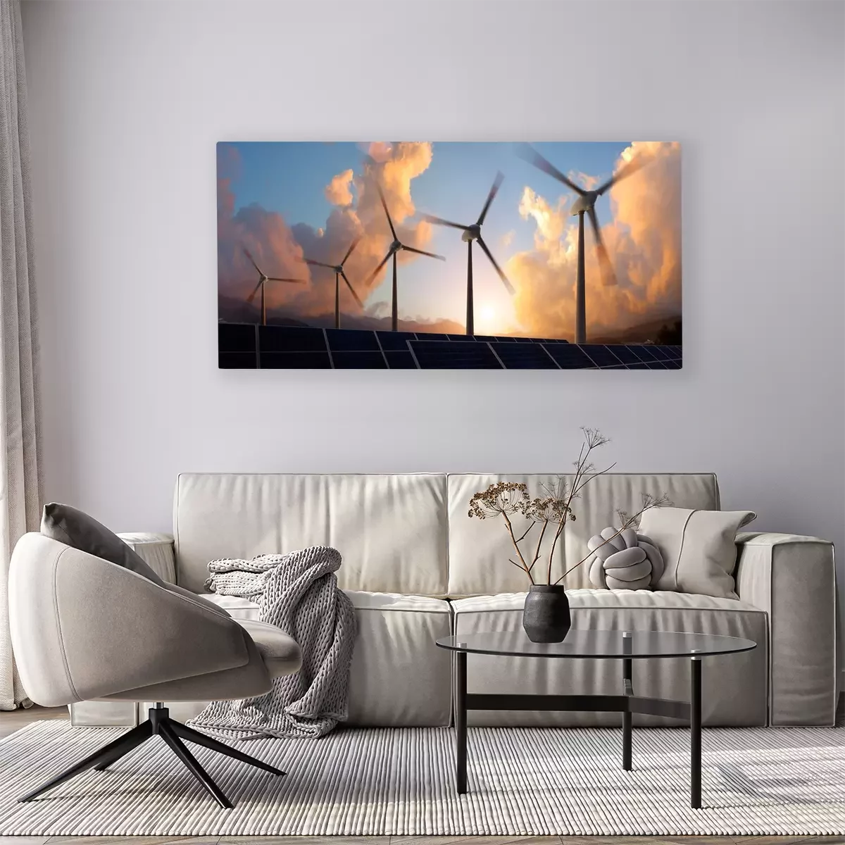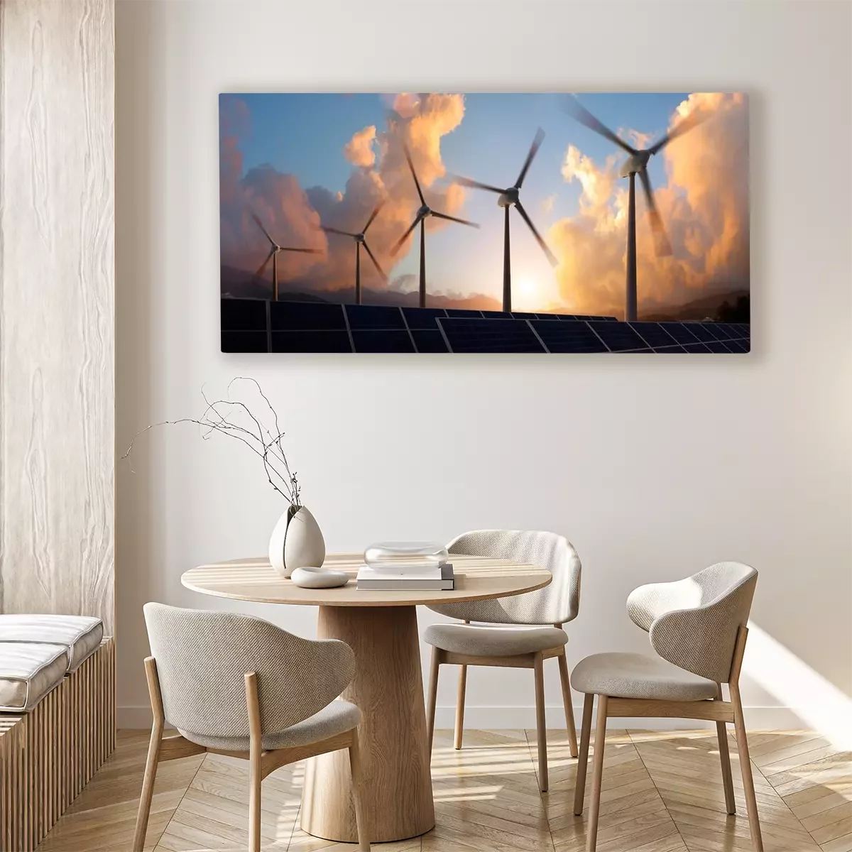 Canvas: Windturbines in de zonsondergang
