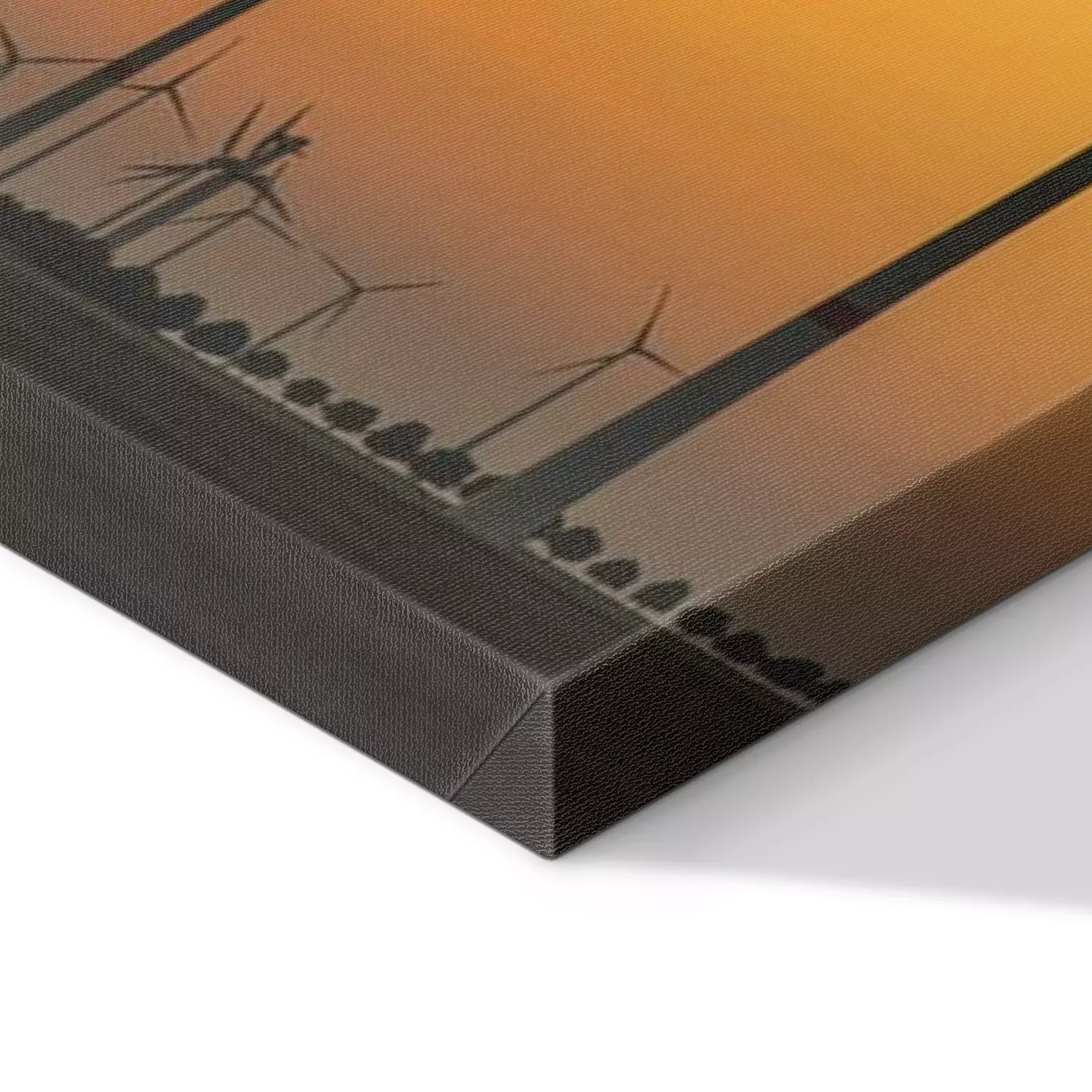 De print wordt aangebracht op hoogwaardig canvas dat op een schildersweefgetouw (spieraam) wordt gespannen. Omdat de print de zijranden bedekt, hoeft het ontwerp niet met een extra kader te worden omlijst. Wij raden ook composities aan die uit meerdere foto's bestaan en zo een coherente compositie vormen.