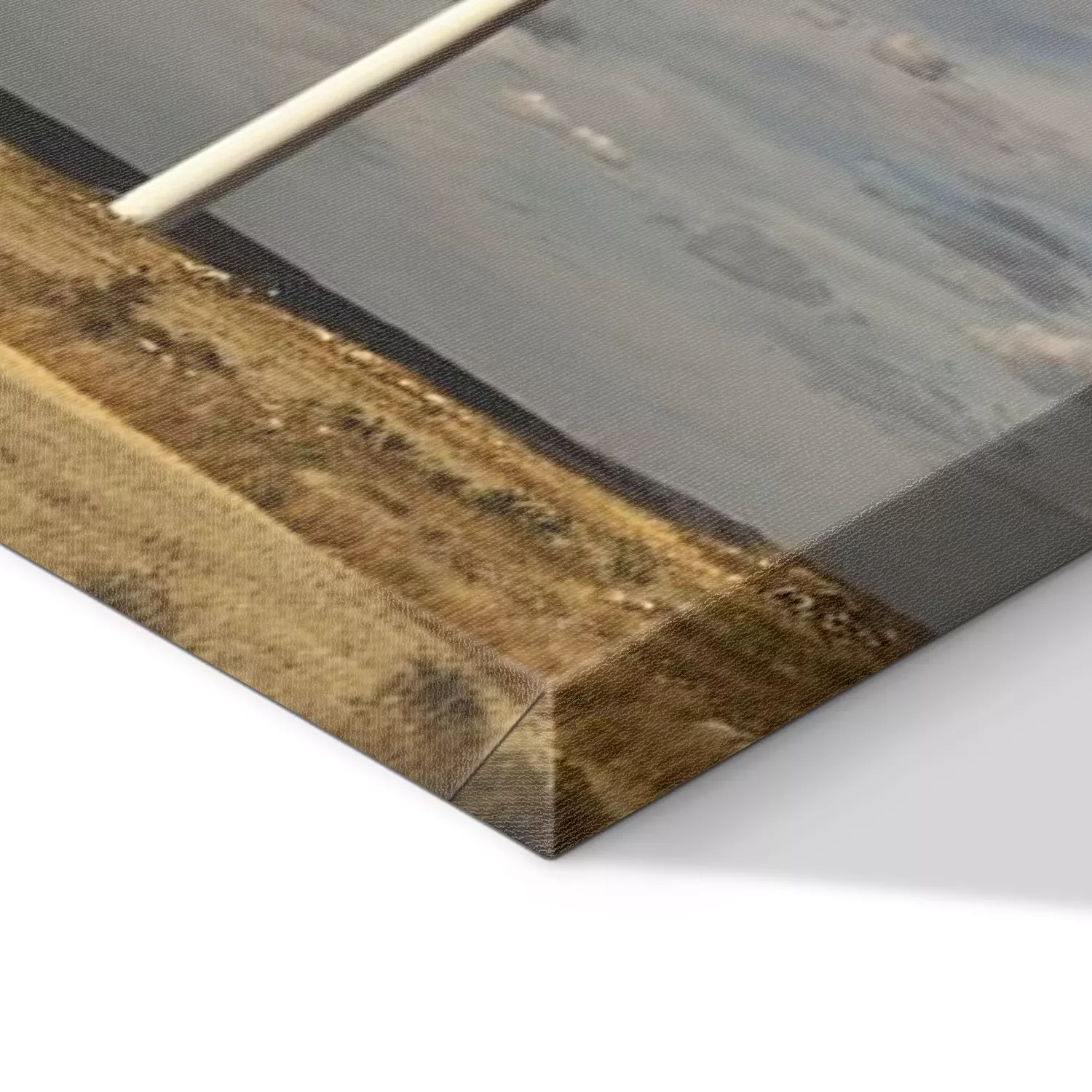 De print wordt aangebracht op hoogwaardig canvas dat op een schildersweefgetouw (spieraam) wordt gespannen. Omdat de print de zijranden bedekt, hoeft het ontwerp niet met een extra kader te worden omlijst. Wij raden ook composities aan die uit meerdere foto's bestaan en zo een coherente compositie vormen.