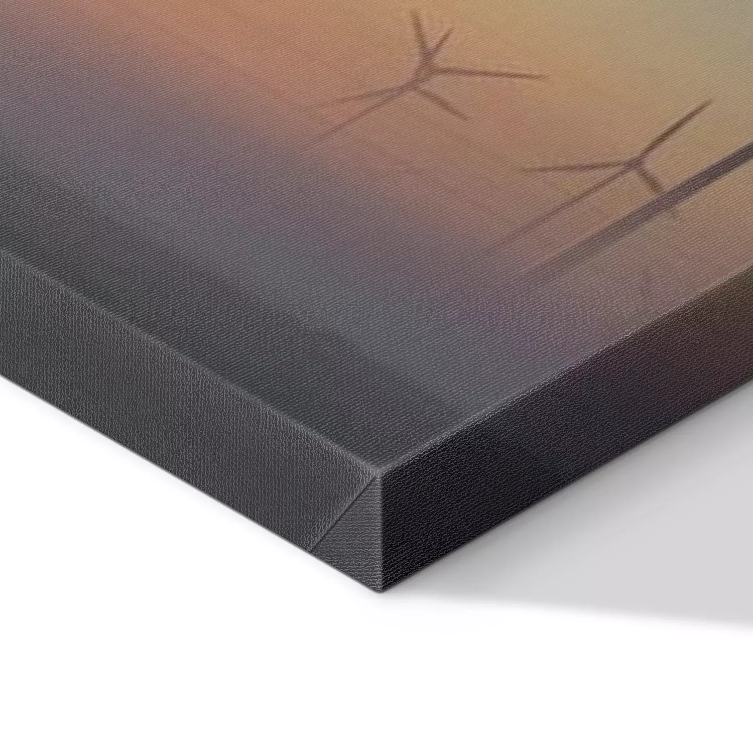 De print wordt aangebracht op hoogwaardig canvas dat op een schildersweefgetouw (spieraam) wordt gespannen. Omdat de print de zijranden bedekt, hoeft het ontwerp niet met een extra kader te worden omlijst. Wij raden ook composities aan die uit meerdere foto's bestaan en zo een coherente compositie vormen.