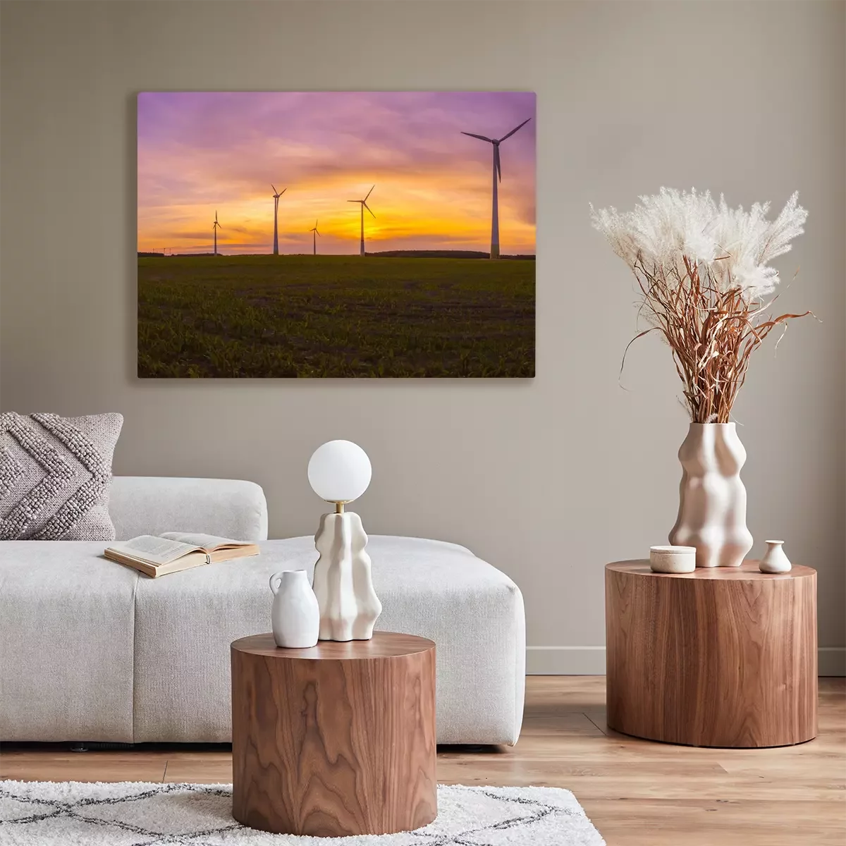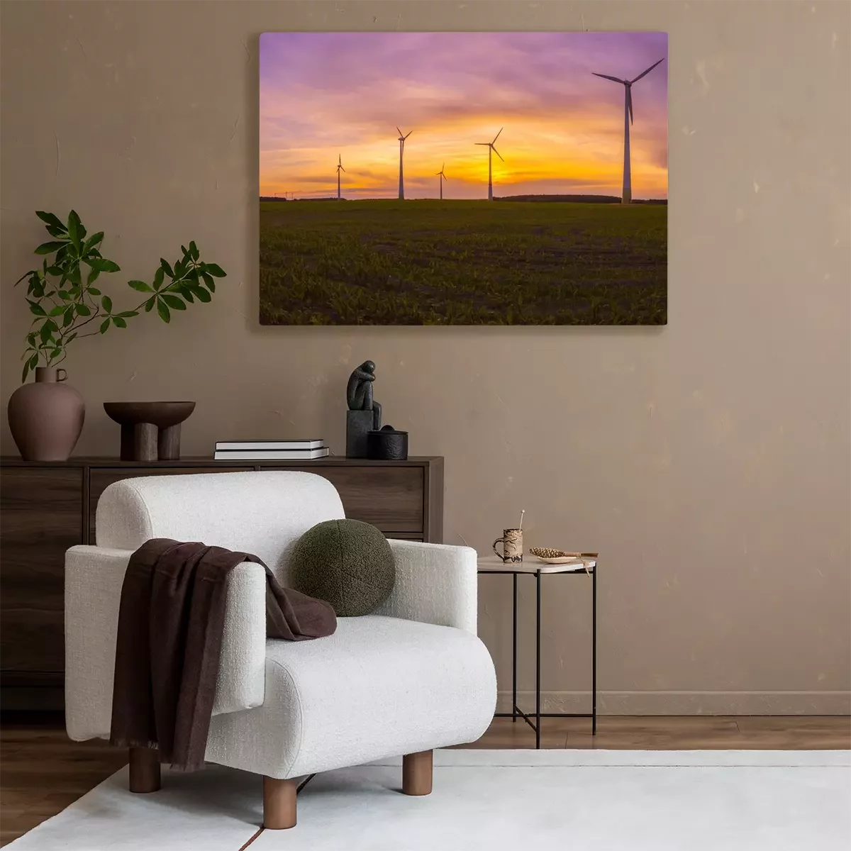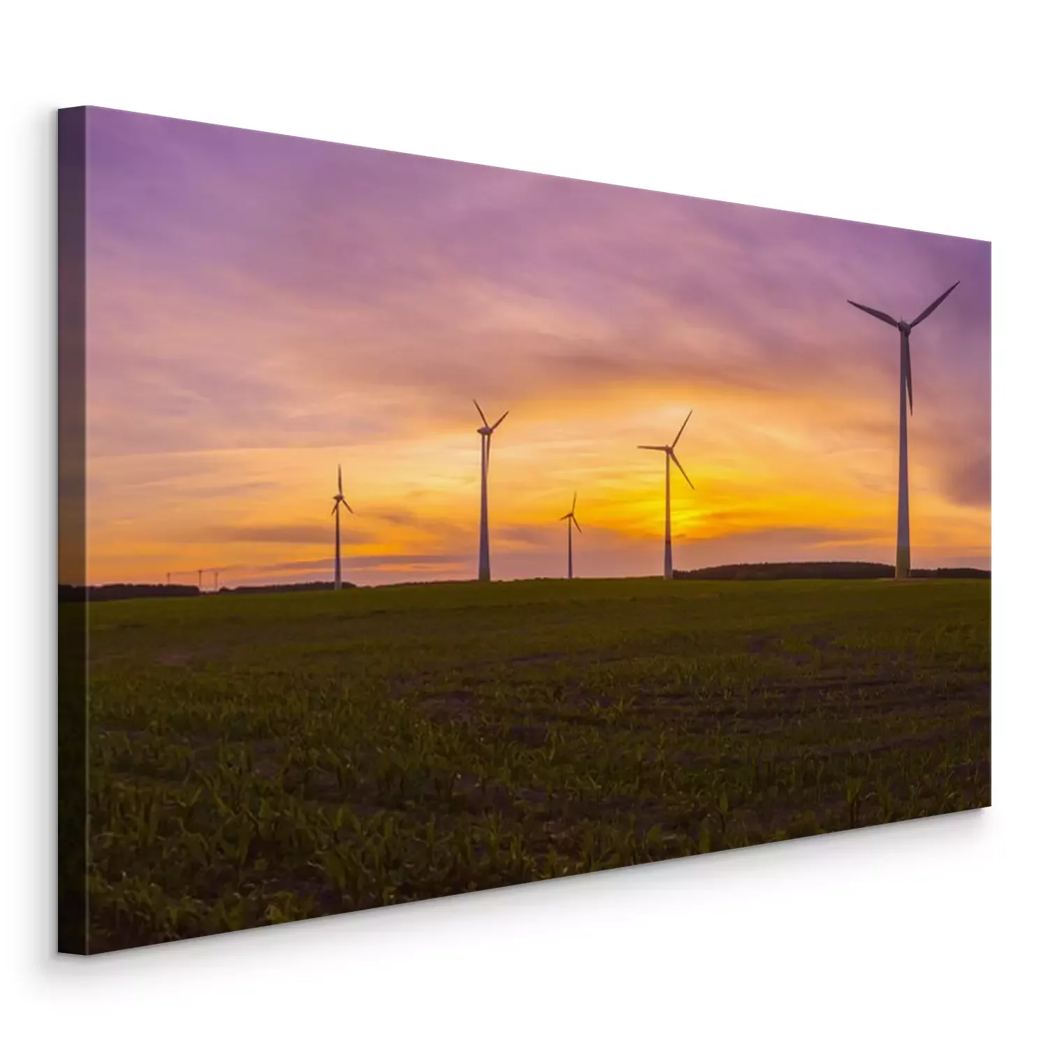 Canvas Windturbines windturbine windpark windenergie zonsopgang achtergrondverlichting XXL