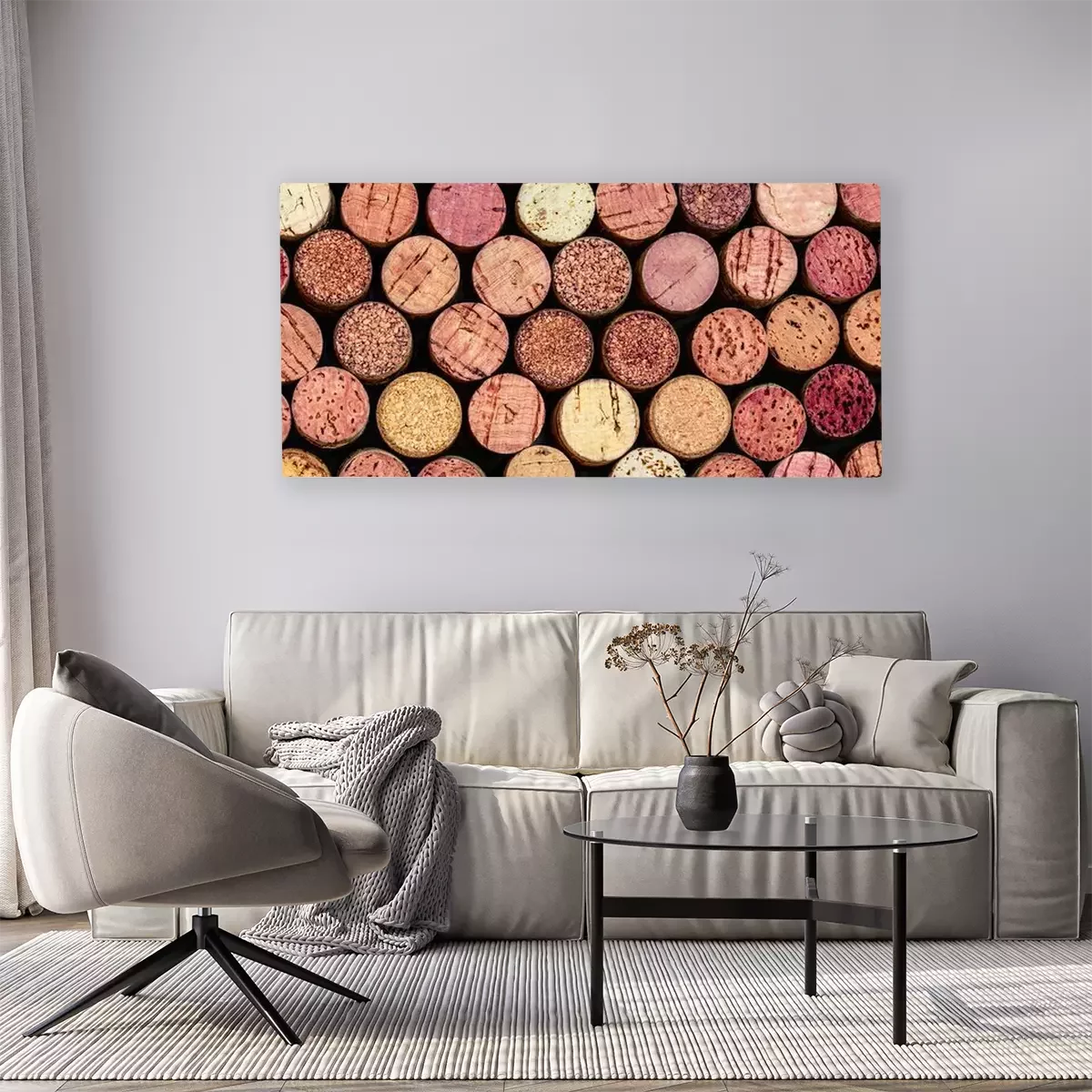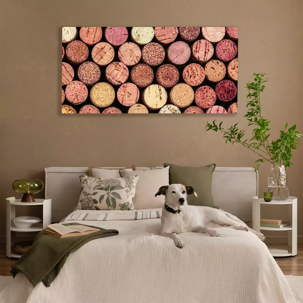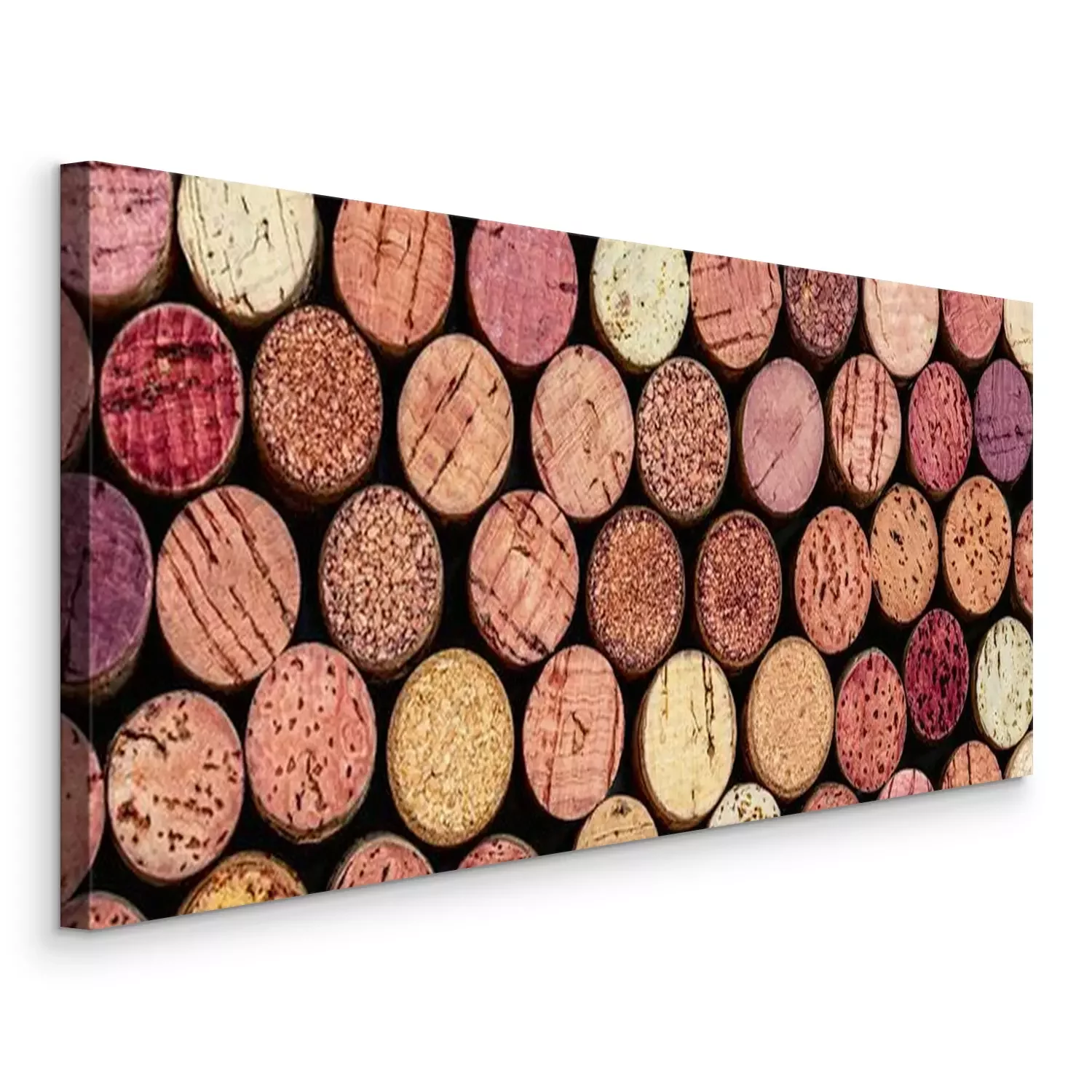 Canvas: Wine corks Pattern. Various wooden wine corks as a Background. Food and drink concept .