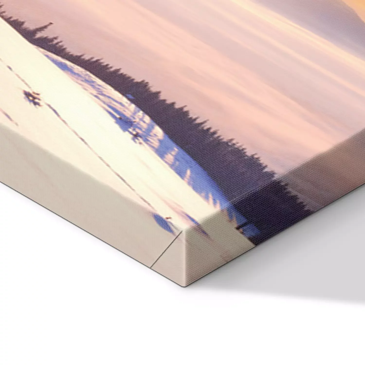 De print wordt aangebracht op hoogwaardig canvas dat op een schildersweefgetouw (spieraam) wordt gespannen. Omdat de print de zijranden bedekt, hoeft het ontwerp niet met een extra kader te worden omlijst. Wij raden ook composities aan die uit meerdere foto's bestaan en zo een coherente compositie vormen.