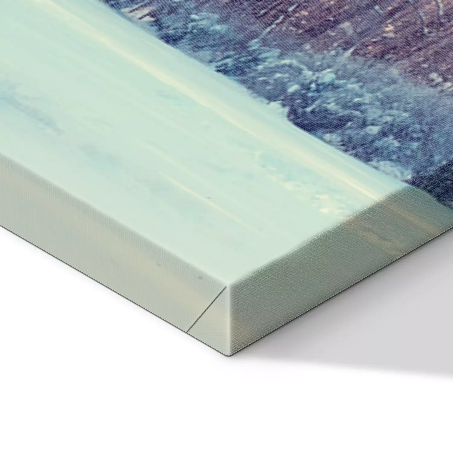 De print wordt aangebracht op hoogwaardig canvas dat op een schildersweefgetouw (spieraam) wordt gespannen. Omdat de print de zijranden bedekt, hoeft het ontwerp niet met een extra kader te worden omlijst. Wij raden ook composities aan die uit meerdere foto's bestaan en zo een coherente compositie vormen.