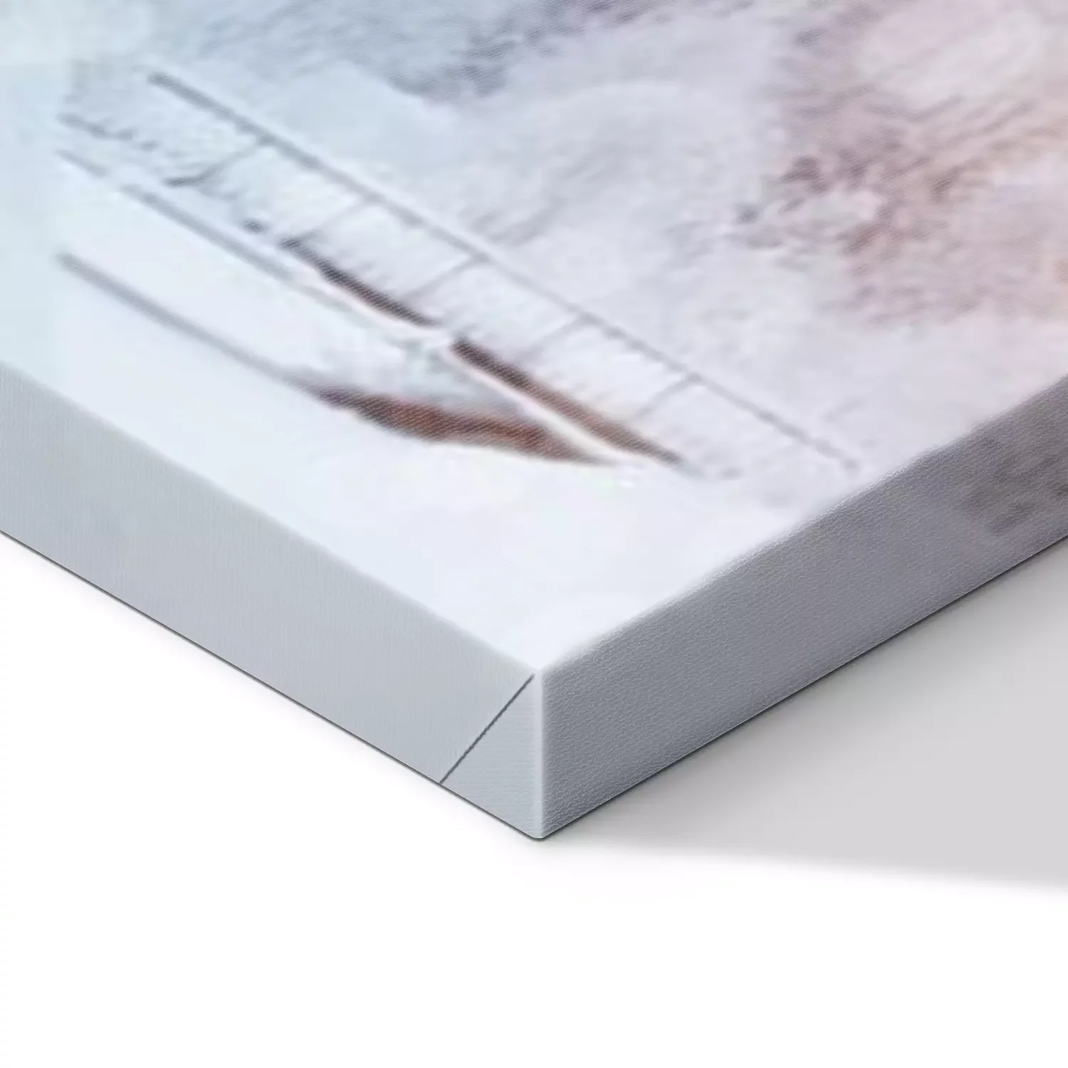 De print wordt aangebracht op hoogwaardig canvas dat op een schildersweefgetouw (spieraam) wordt gespannen. Omdat de print de zijranden bedekt, hoeft het ontwerp niet met een extra kader te worden omlijst. Wij raden ook composities aan die uit meerdere foto's bestaan en zo een coherente compositie vormen.