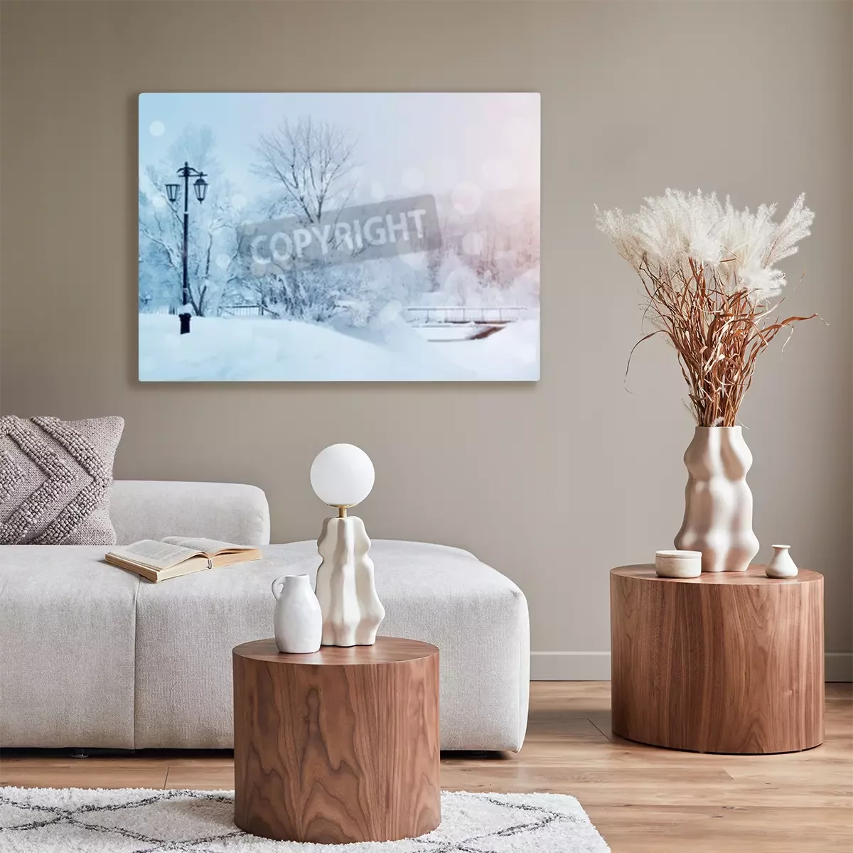 Canvas: Winter achtergrond, landschap. bomen van de winter in wonderland. Winter scene. Kerstmis, Nieuwjaar achtergrond
