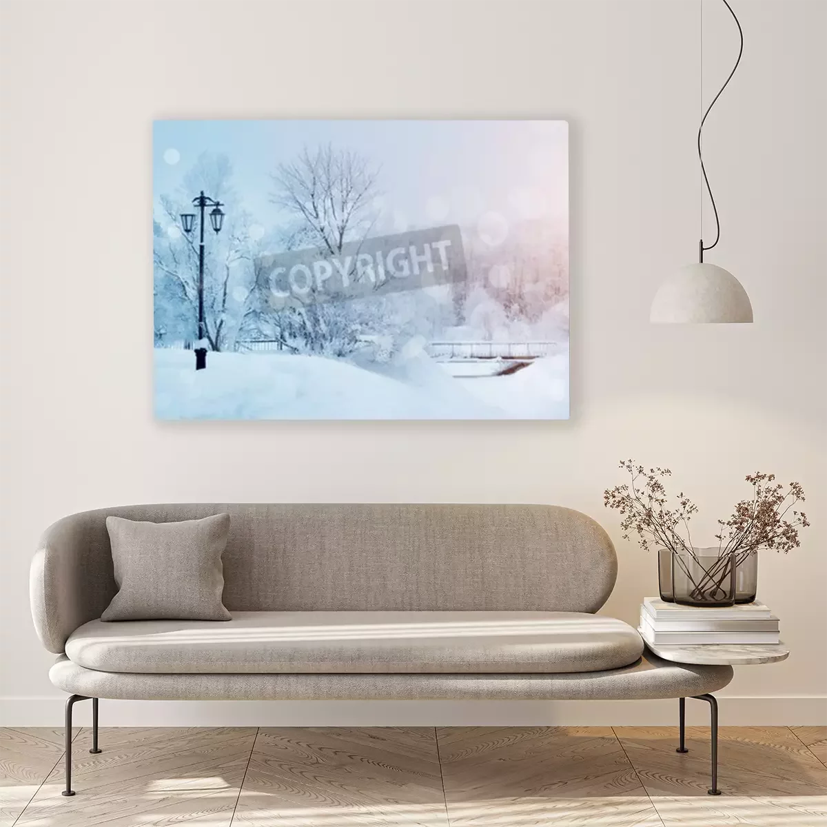 Canvas Winter achtergrond, landschap. bomen van de winter in wonderland. Winter scene. Kerstmis, Nieuwjaar achtergrond