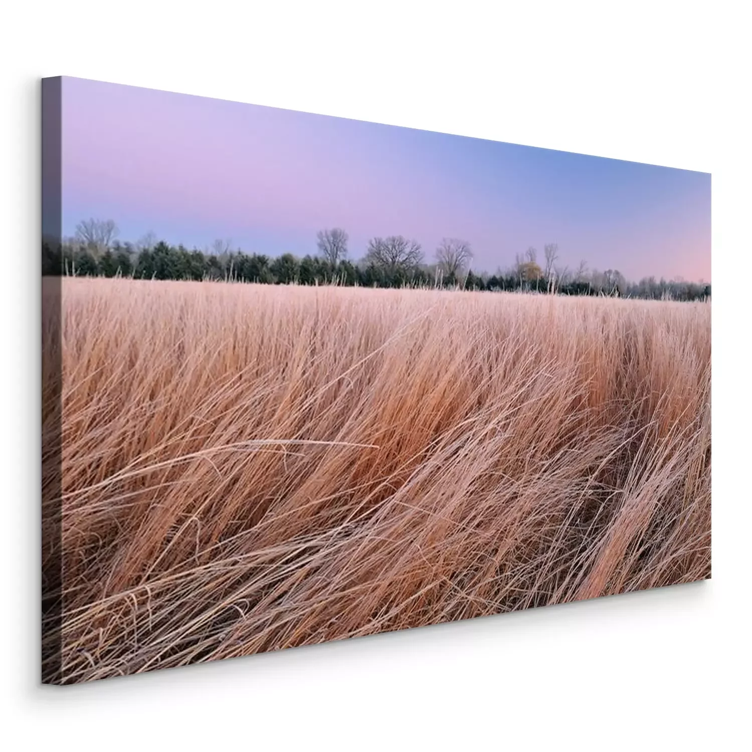 Canvas Winter landscape of frosted tall grass prairie at dawn, Fort Custer State Park, Michigan, USA