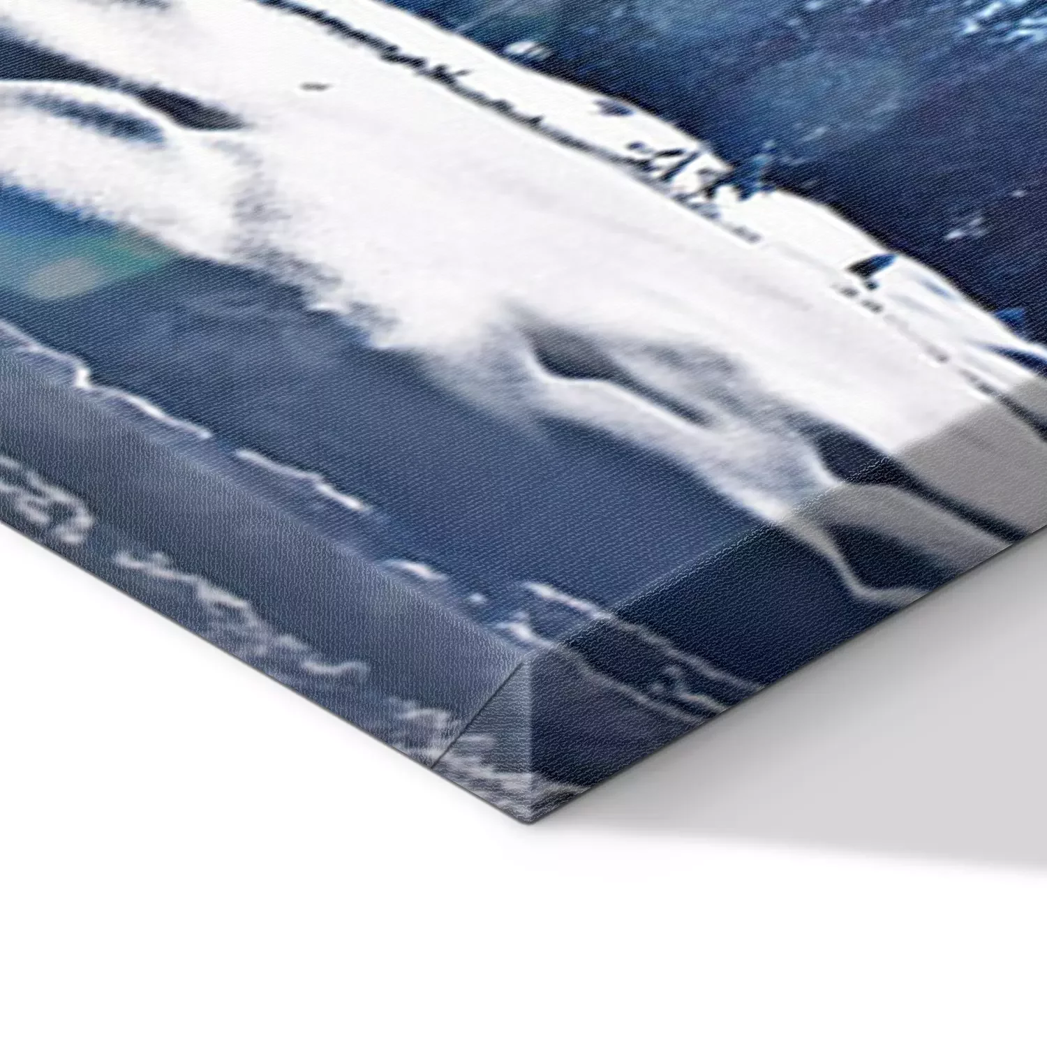 De print wordt aangebracht op hoogwaardig canvas dat op een schildersweefgetouw (spieraam) wordt gespannen. Omdat de print de zijranden bedekt, hoeft het ontwerp niet met een extra kader te worden omlijst. Wij raden ook composities aan die uit meerdere foto's bestaan en zo een coherente compositie vormen.