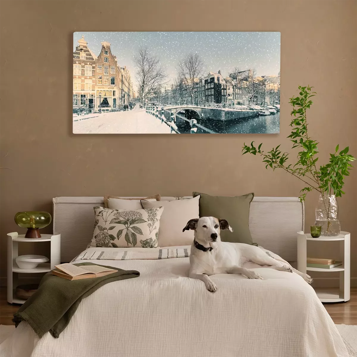 Canvas: Winter snow view of a Dutch canal in Amsterdam