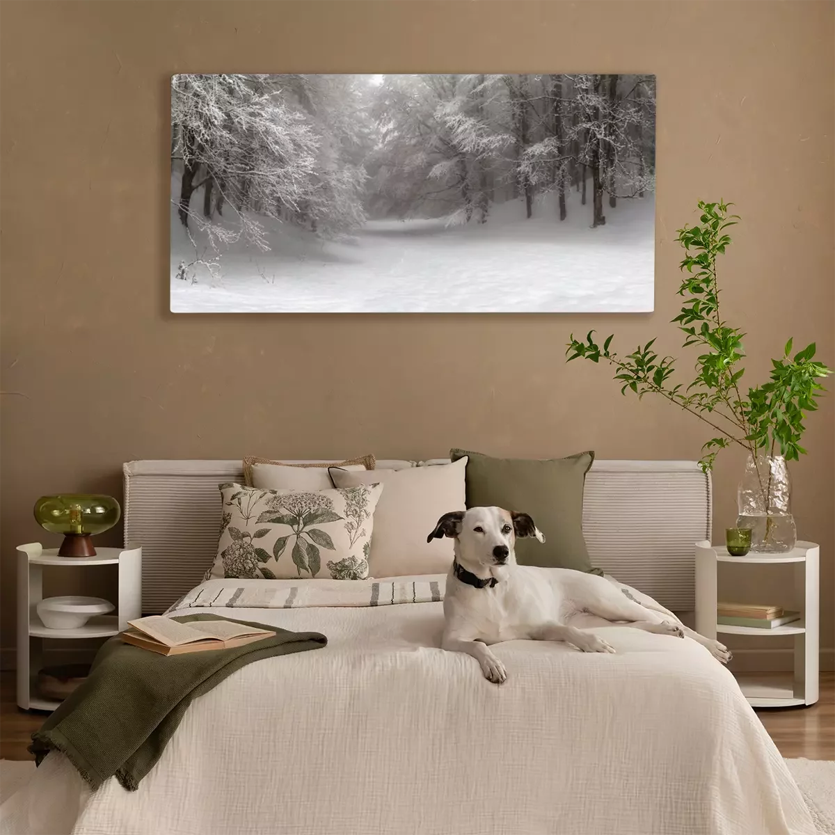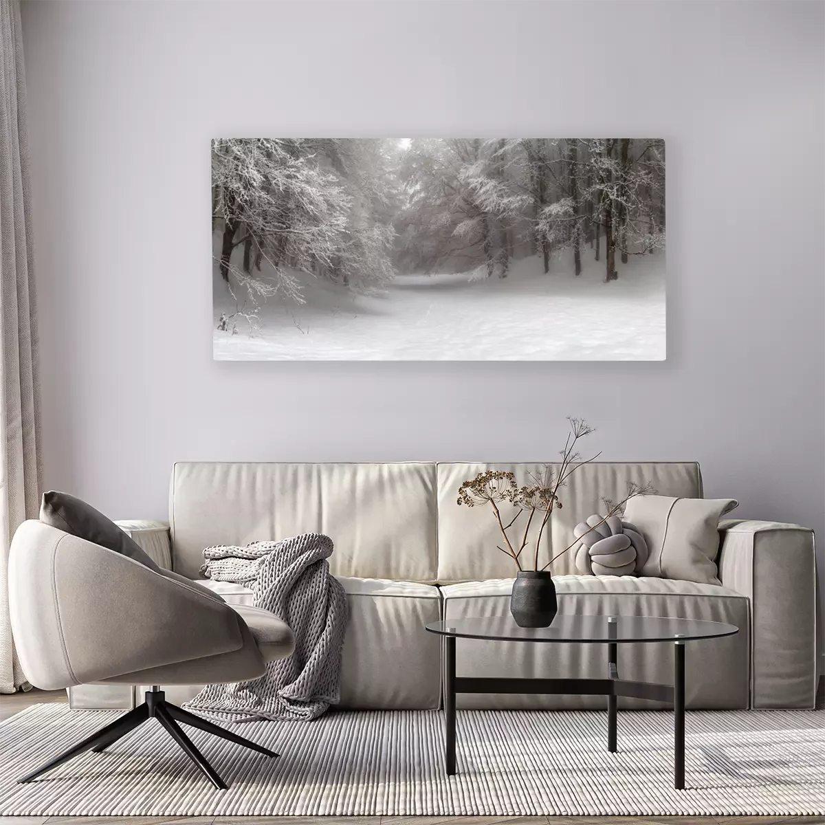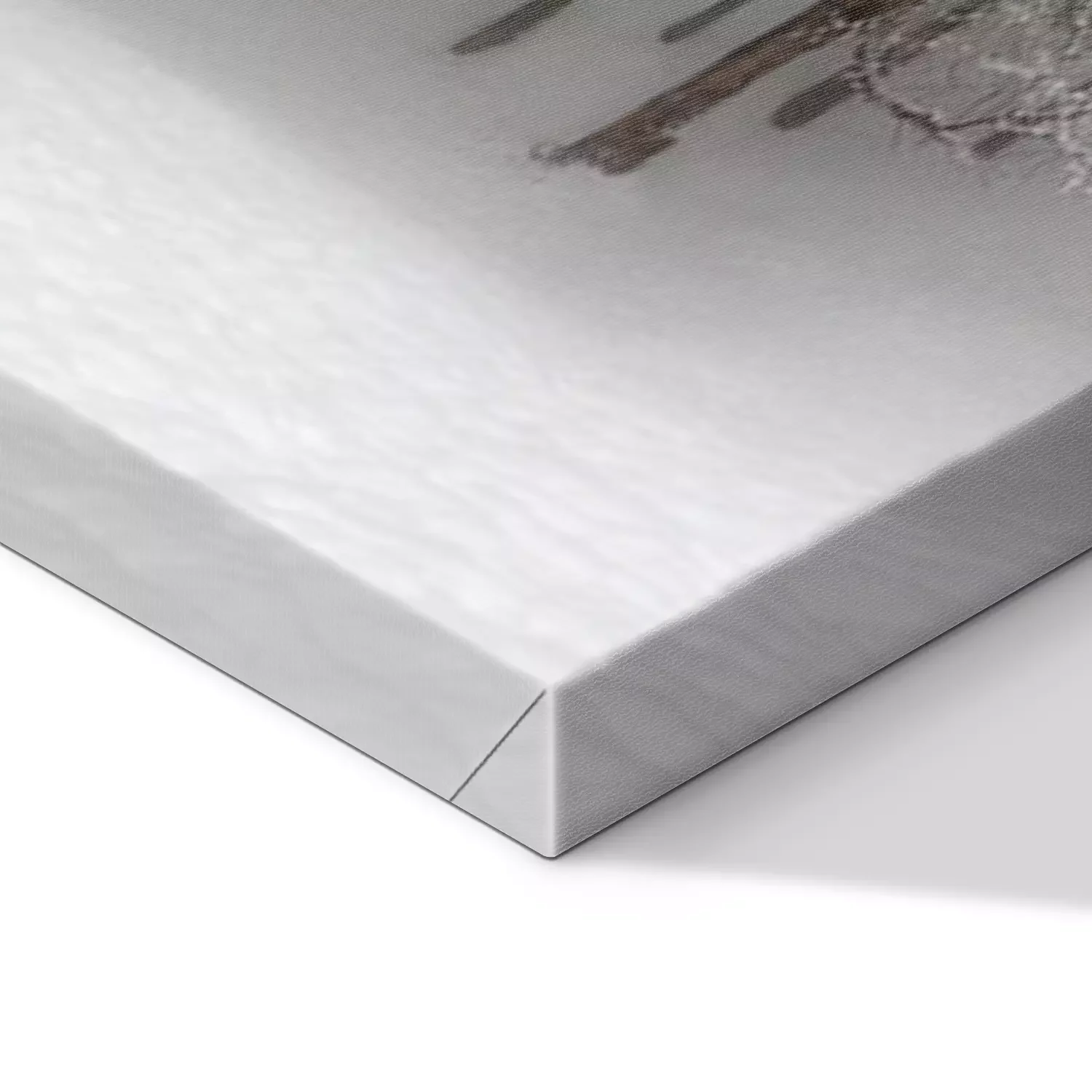 De print wordt aangebracht op hoogwaardig canvas dat op een schildersweefgetouw (spieraam) wordt gespannen. Omdat de print de zijranden bedekt, hoeft het ontwerp niet met een extra kader te worden omlijst. Wij raden ook composities aan die uit meerdere foto's bestaan en zo een coherente compositie vormen.