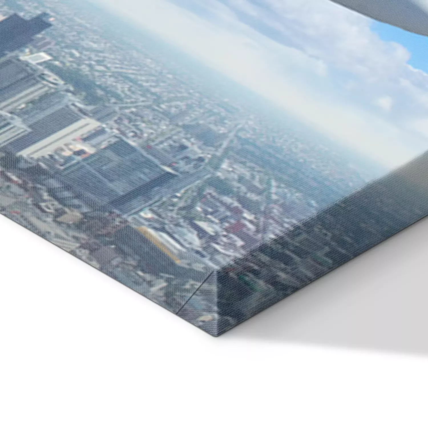 De print wordt aangebracht op hoogwaardig canvas dat op een schildersweefgetouw (spieraam) wordt gespannen. Omdat de print de zijranden bedekt, hoeft het ontwerp niet met een extra kader te worden omlijst. Wij raden ook composities aan die uit meerdere foto's bestaan en zo een coherente compositie vormen.