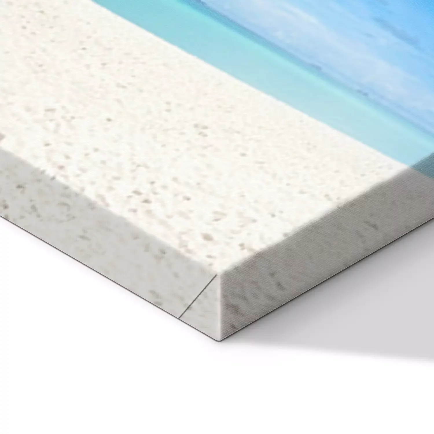 De print wordt aangebracht op hoogwaardig canvas dat op een schildersweefgetouw (spieraam) wordt gespannen. Omdat de print de zijranden bedekt, hoeft het ontwerp niet met een extra kader te worden omlijst. Wij raden ook composities aan die uit meerdere foto's bestaan en zo een coherente compositie vormen.