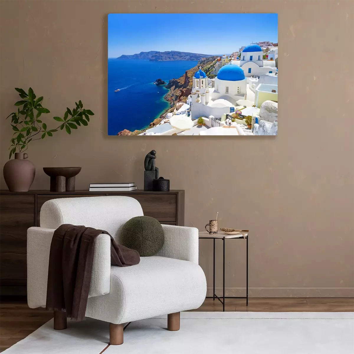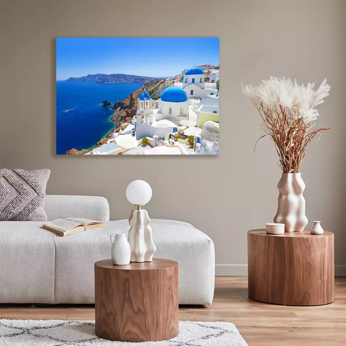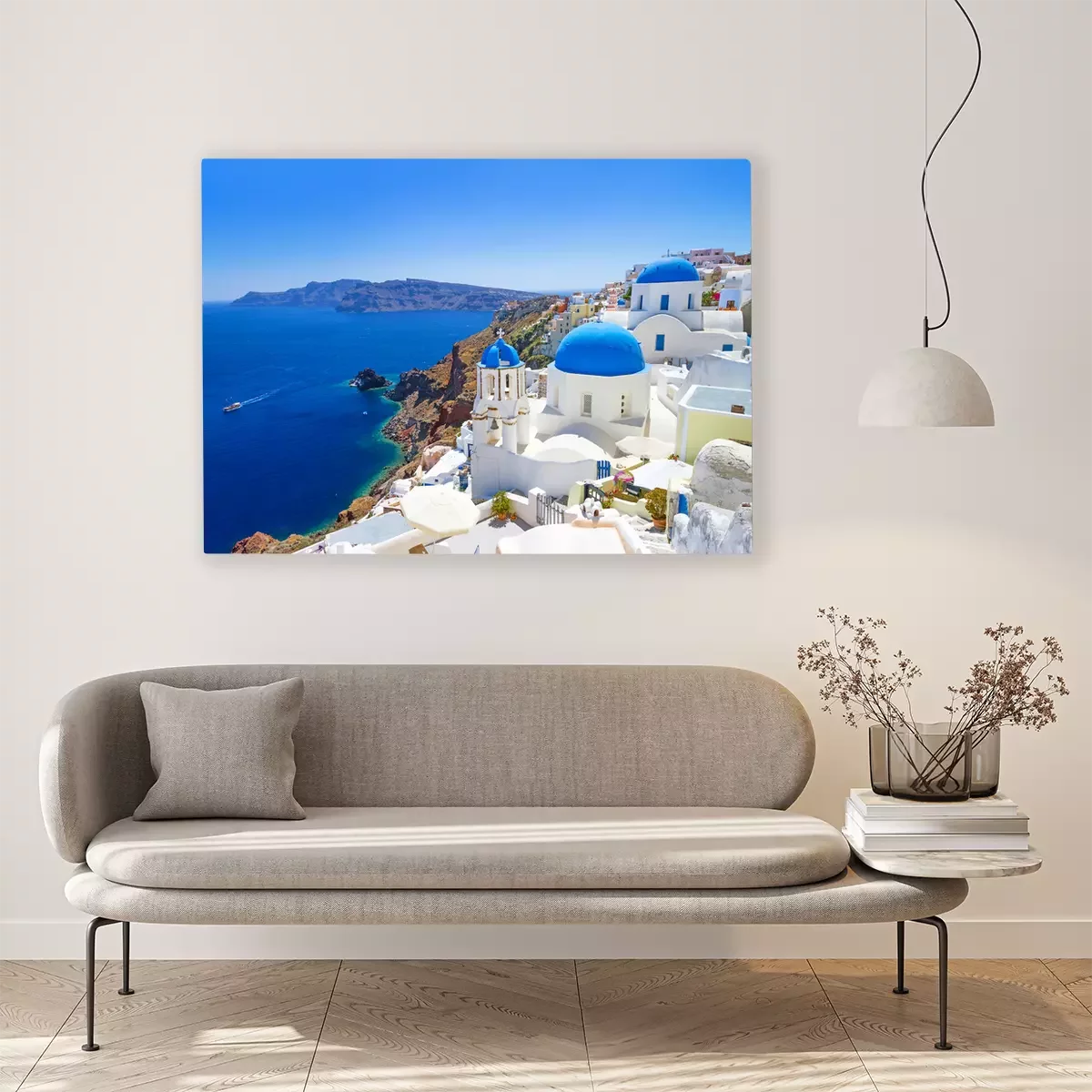 Canvas: Witte architectuur van Oia dorp op het eiland Santorini, Griekenland