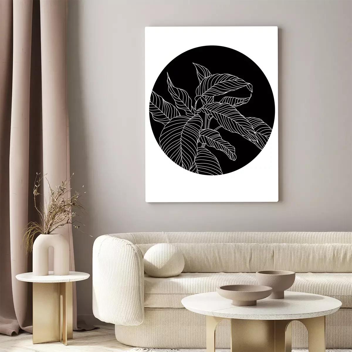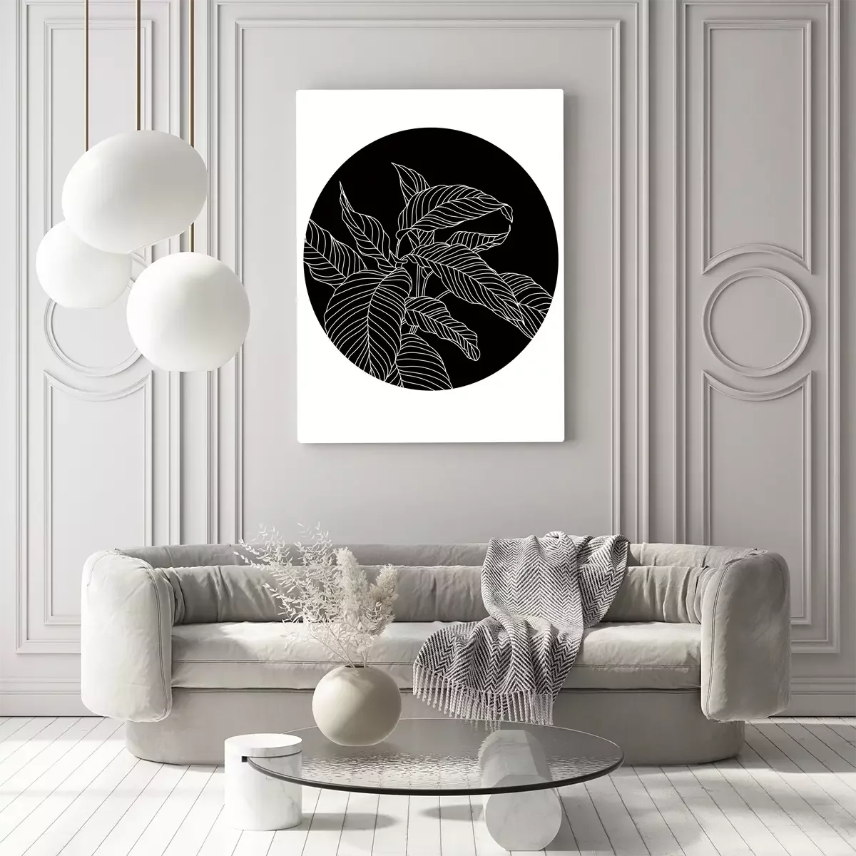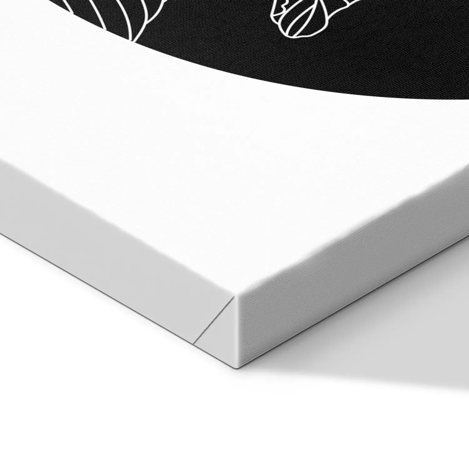 Witte bladeren op een zwarte achtergrond in een cirkel