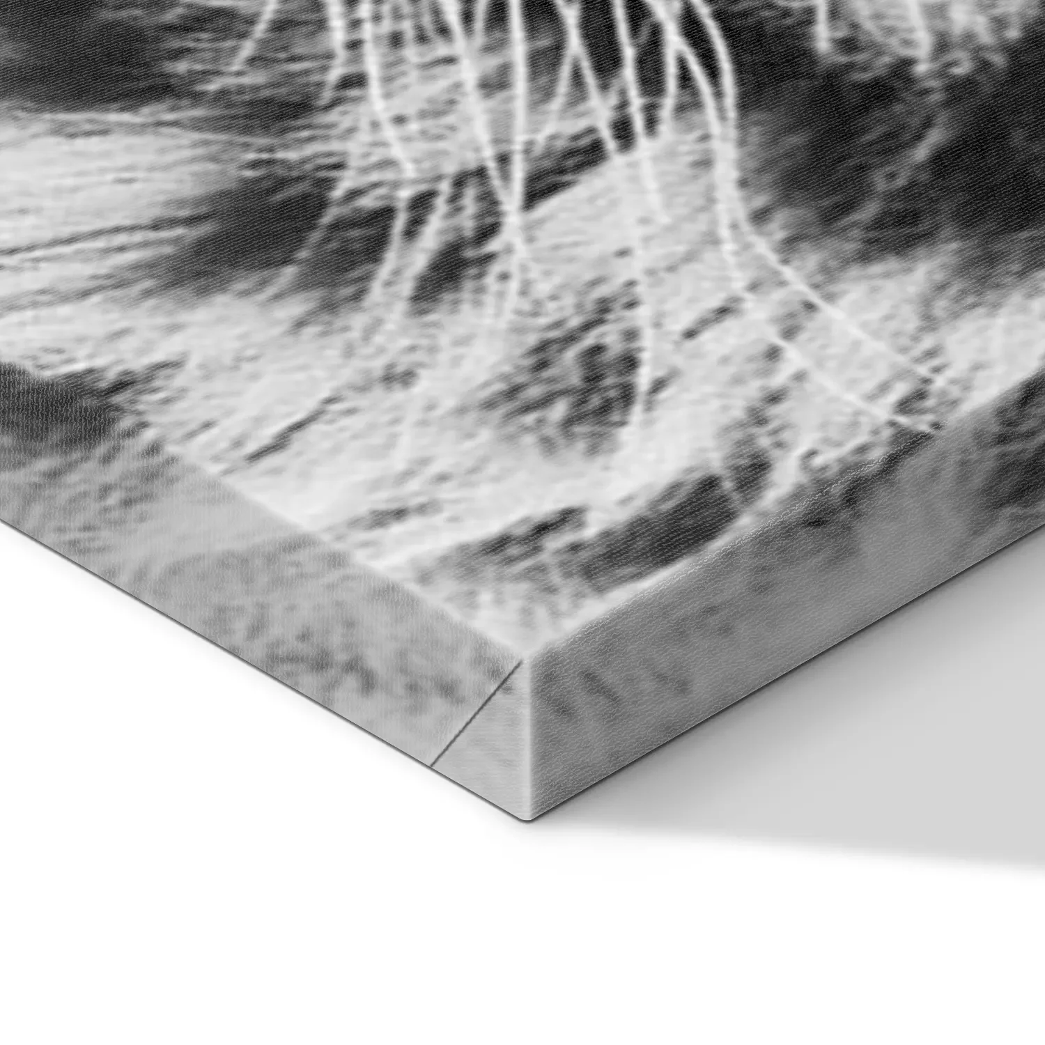 De print wordt aangebracht op hoogwaardig canvas dat op een schildersweefgetouw (spieraam) wordt gespannen. Omdat de print de zijranden bedekt, hoeft het ontwerp niet met een extra kader te worden omlijst. Wij raden ook composities aan die uit meerdere foto's bestaan en zo een coherente compositie vormen.