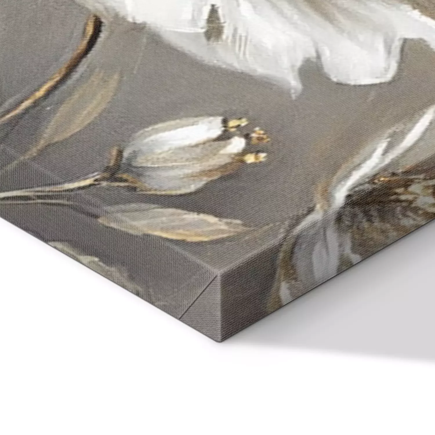 De print wordt aangebracht op hoogwaardig canvas dat op een schildersweefgetouw (spieraam) wordt gespannen. Omdat de print de zijranden bedekt, hoeft het ontwerp niet met een extra kader te worden omlijst. Wij raden ook composities aan die uit meerdere foto's bestaan en zo een coherente compositie vormen.