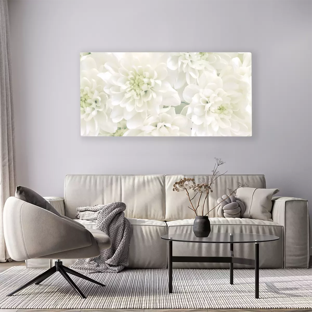 Canvas Witte chrysant flowers.High key zachte foto's ..