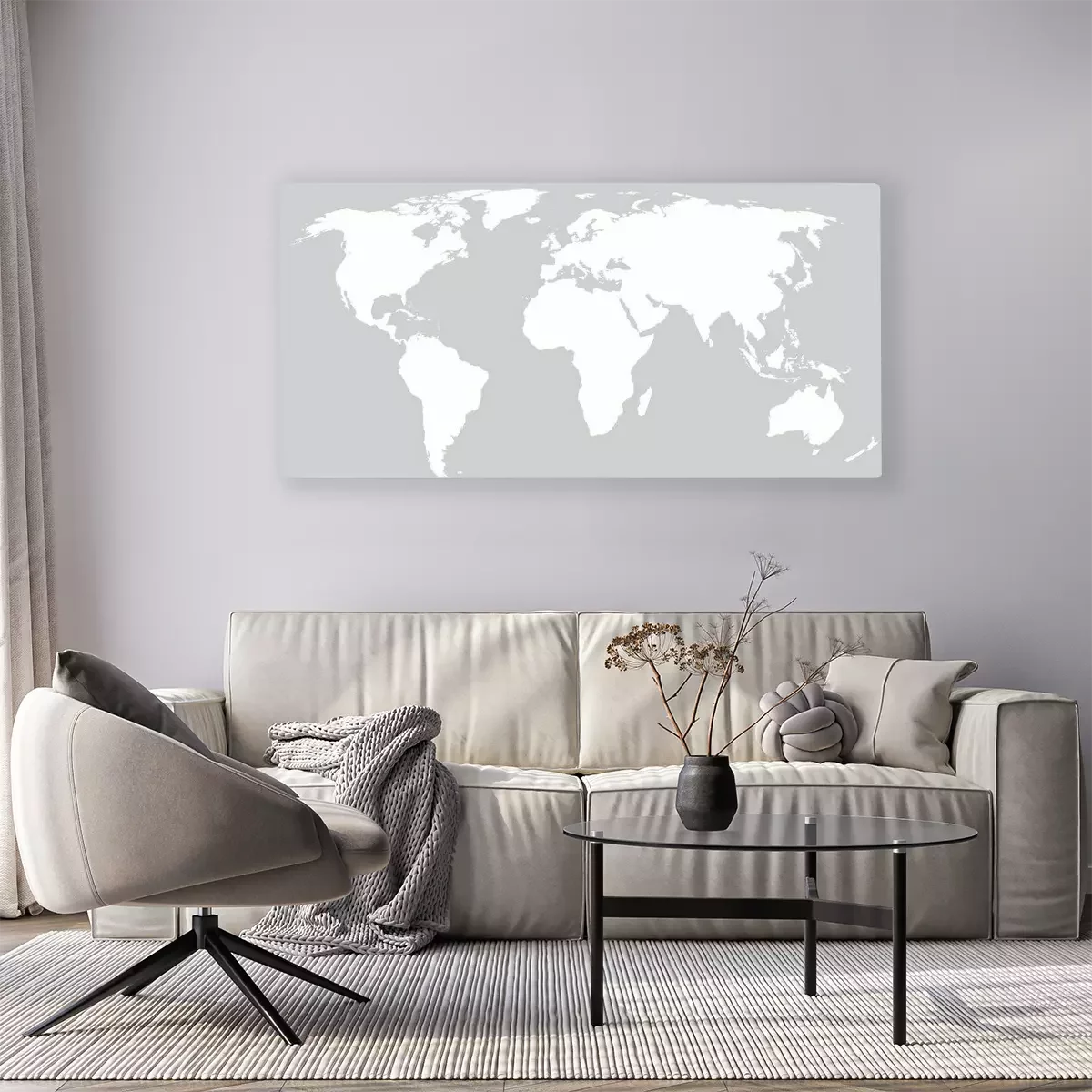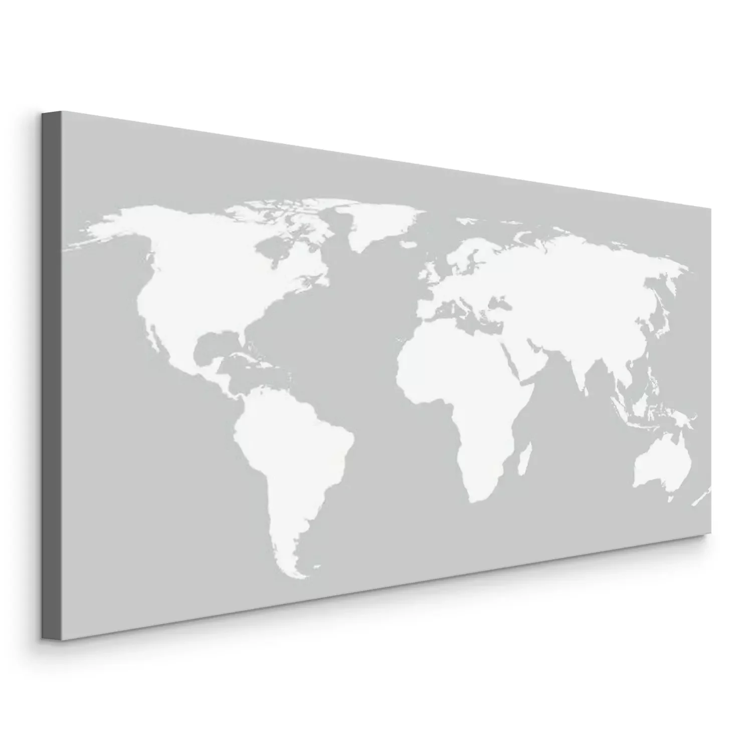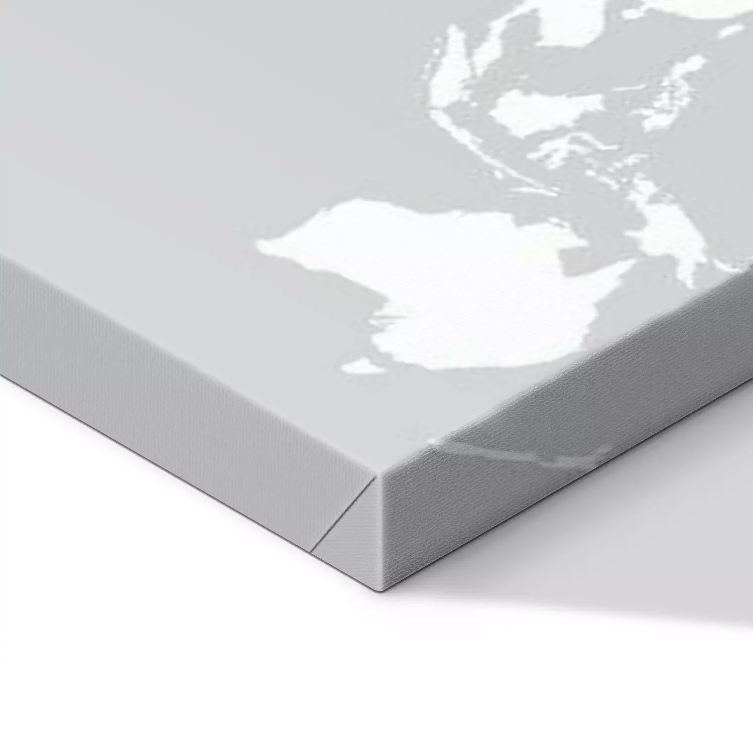 Canvas: Witte kaart van de wereld op een grijze achtergrond