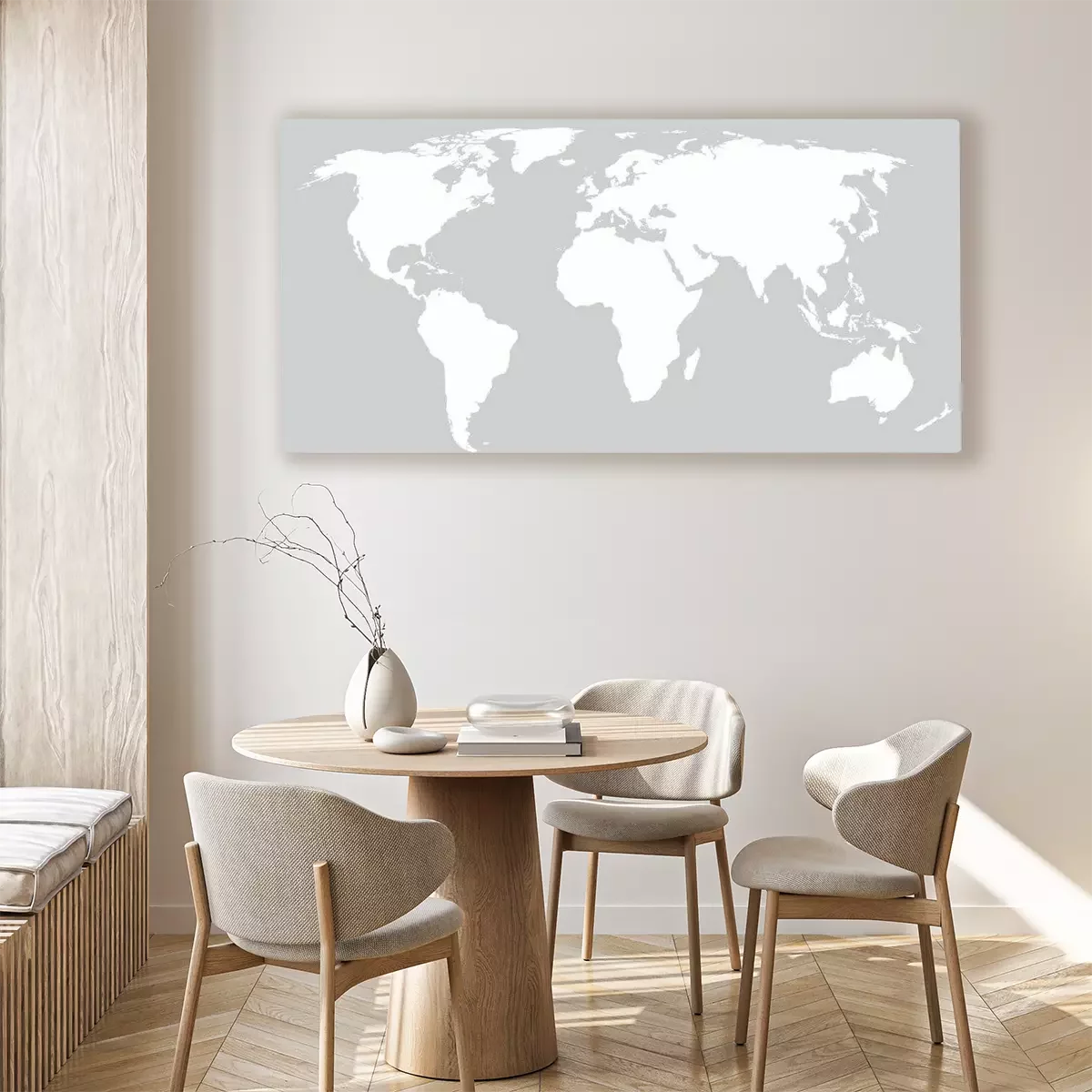 Canvas Witte kaart van de wereld op een grijze achtergrond