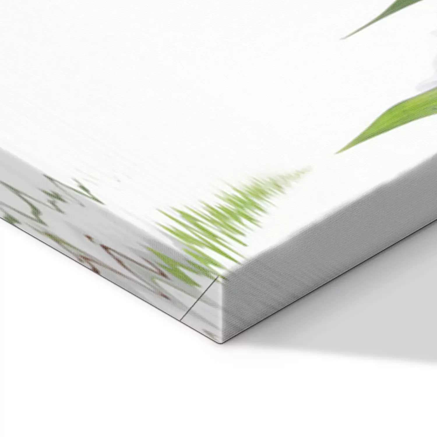 De print wordt aangebracht op hoogwaardig canvas dat op een schildersweefgetouw (spieraam) wordt gespannen. Omdat de print de zijranden bedekt, hoeft het ontwerp niet met een extra kader te worden omlijst. Wij raden ook composities aan die uit meerdere foto's bestaan en zo een coherente compositie vormen.