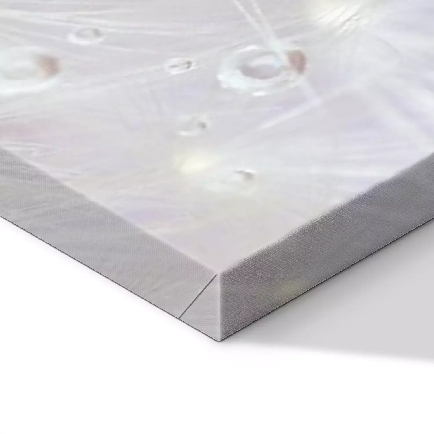 De print wordt aangebracht op hoogwaardig canvas dat op een schildersweefgetouw (spieraam) wordt gespannen. Omdat de print de zijranden bedekt, hoeft het ontwerp niet met een extra kader te worden omlijst. Wij raden ook composities aan die uit meerdere foto's bestaan en zo een coherente compositie vormen.