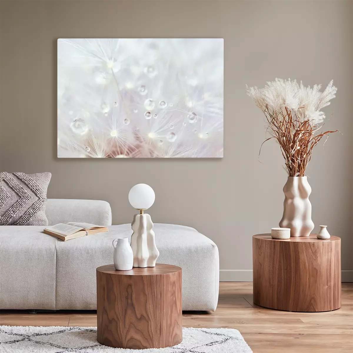 Canvas: Witte paardebloemmacro