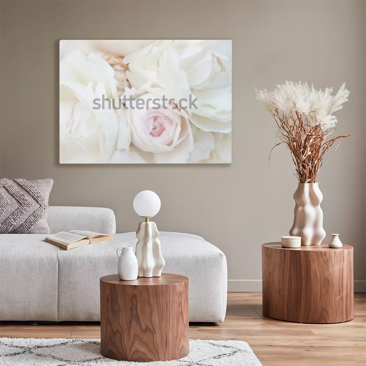 Canvas: Witte rozen macrobos