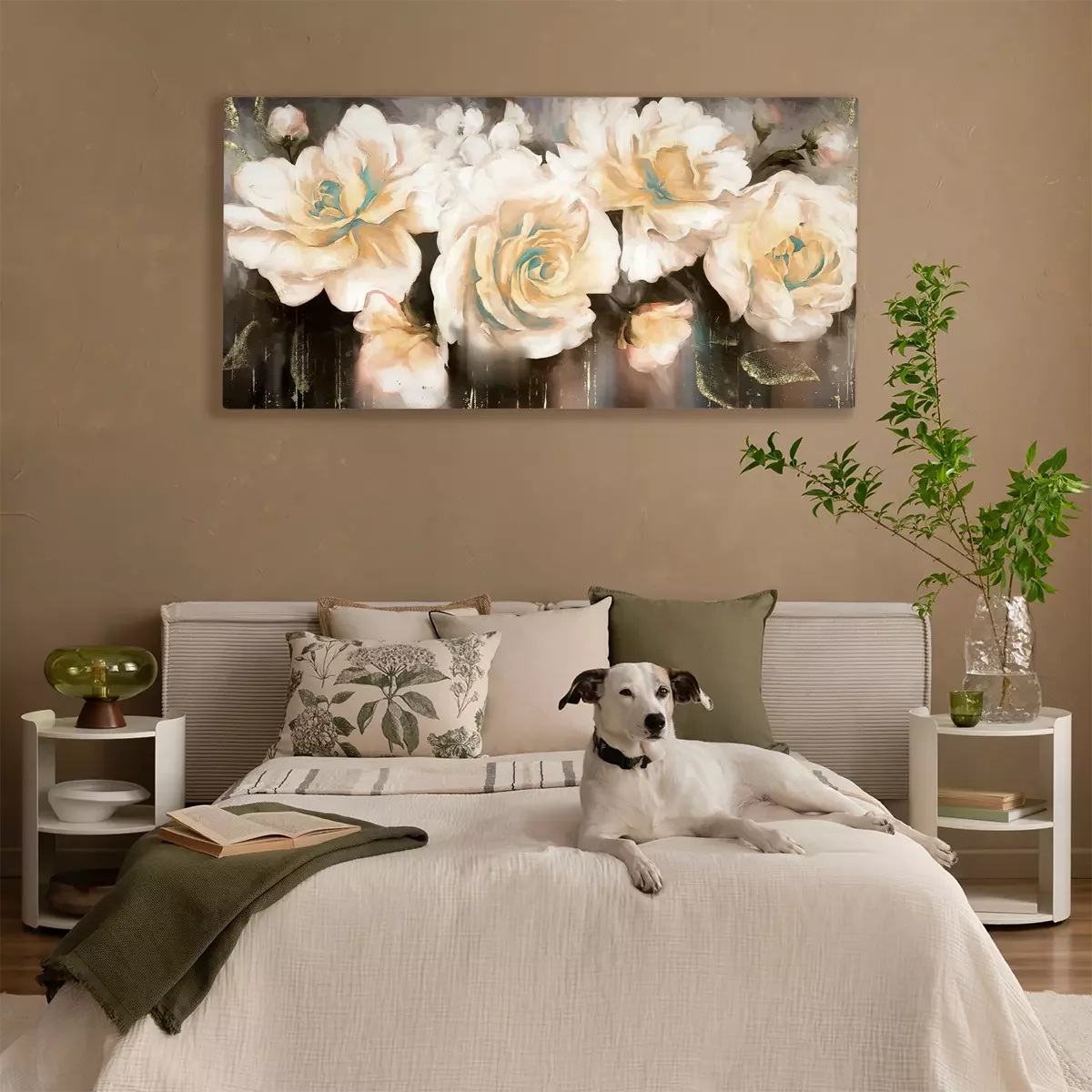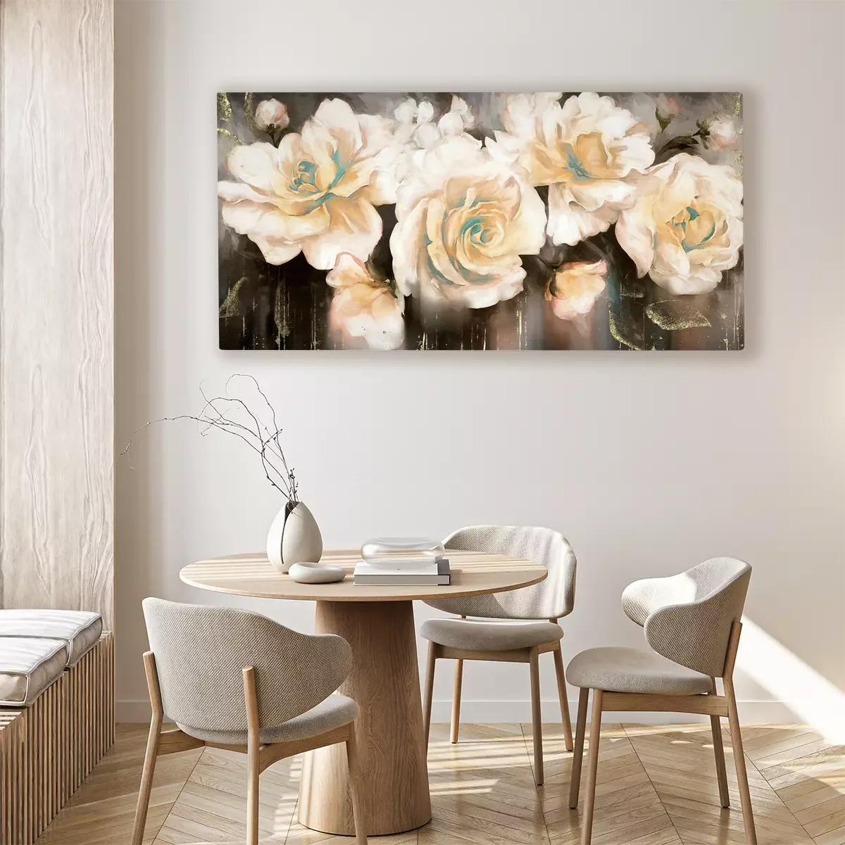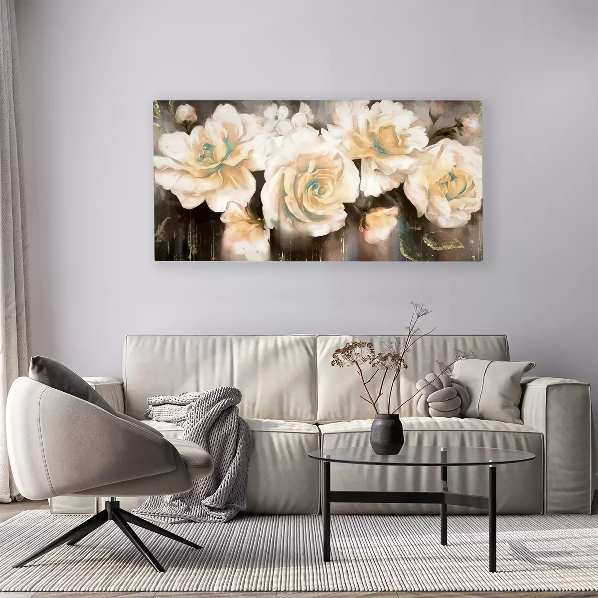 Witte rozenbloemen op een contrasterende donkere aquarelachtergrond