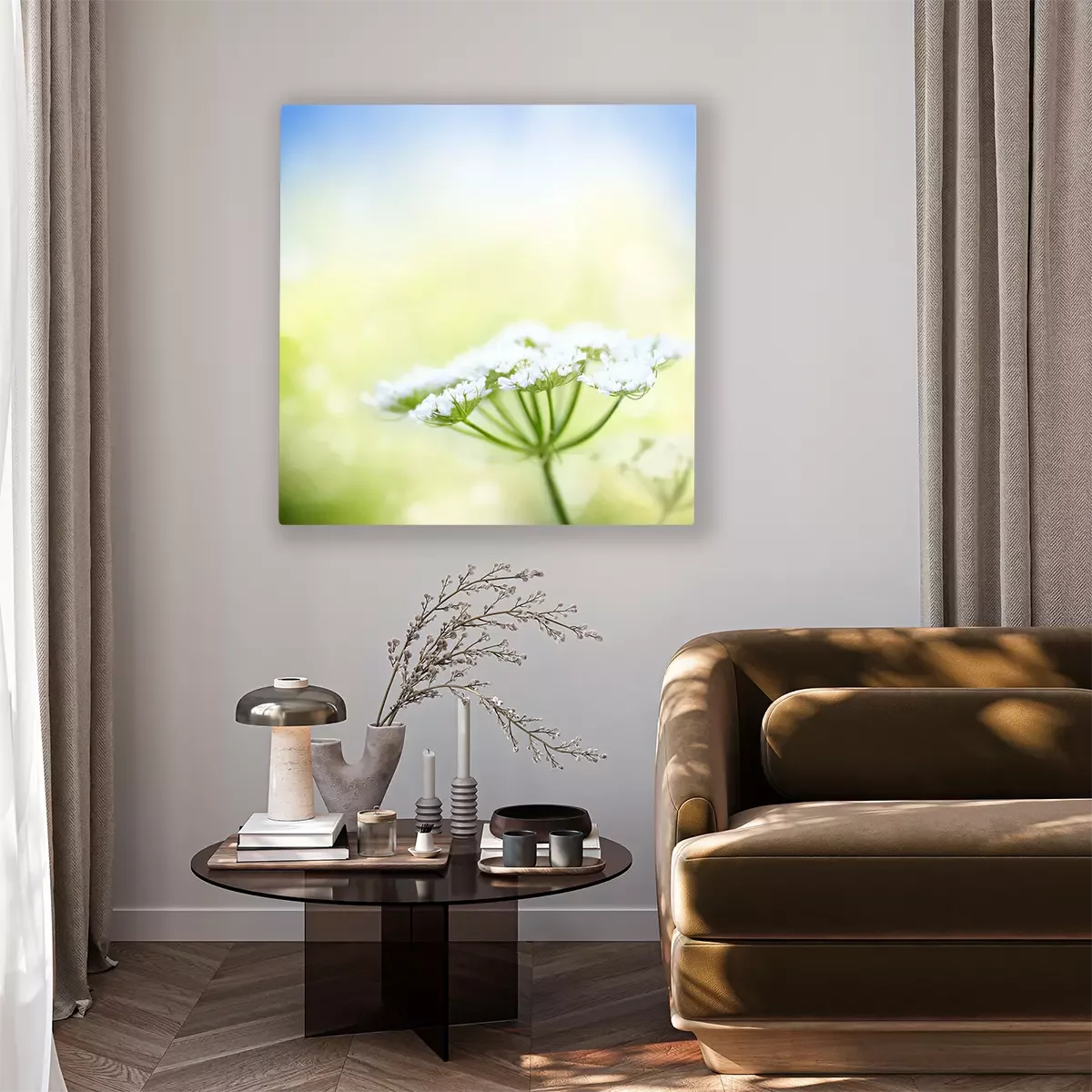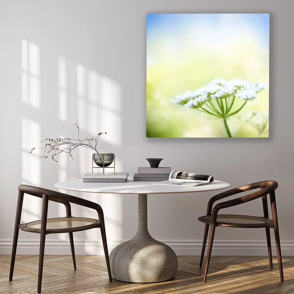 Canvas: Witte wilde peen bloem op lente achtergrond