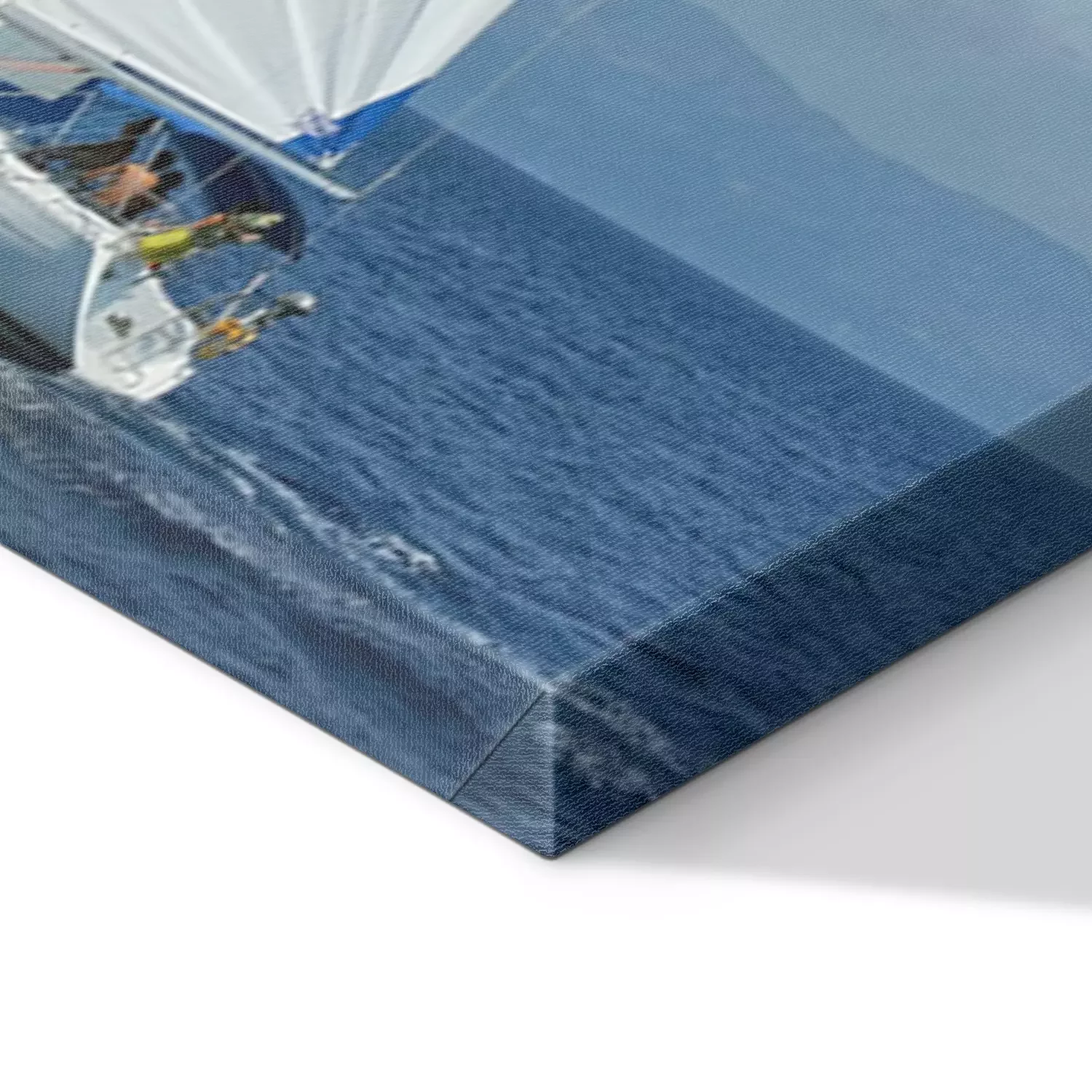 De print wordt aangebracht op hoogwaardig canvas dat op een schildersweefgetouw (spieraam) wordt gespannen. Omdat de print de zijranden bedekt, hoeft het ontwerp niet met een extra kader te worden omlijst. Wij raden ook composities aan die uit meerdere foto's bestaan en zo een coherente compositie vormen.