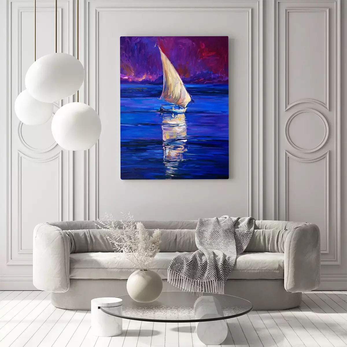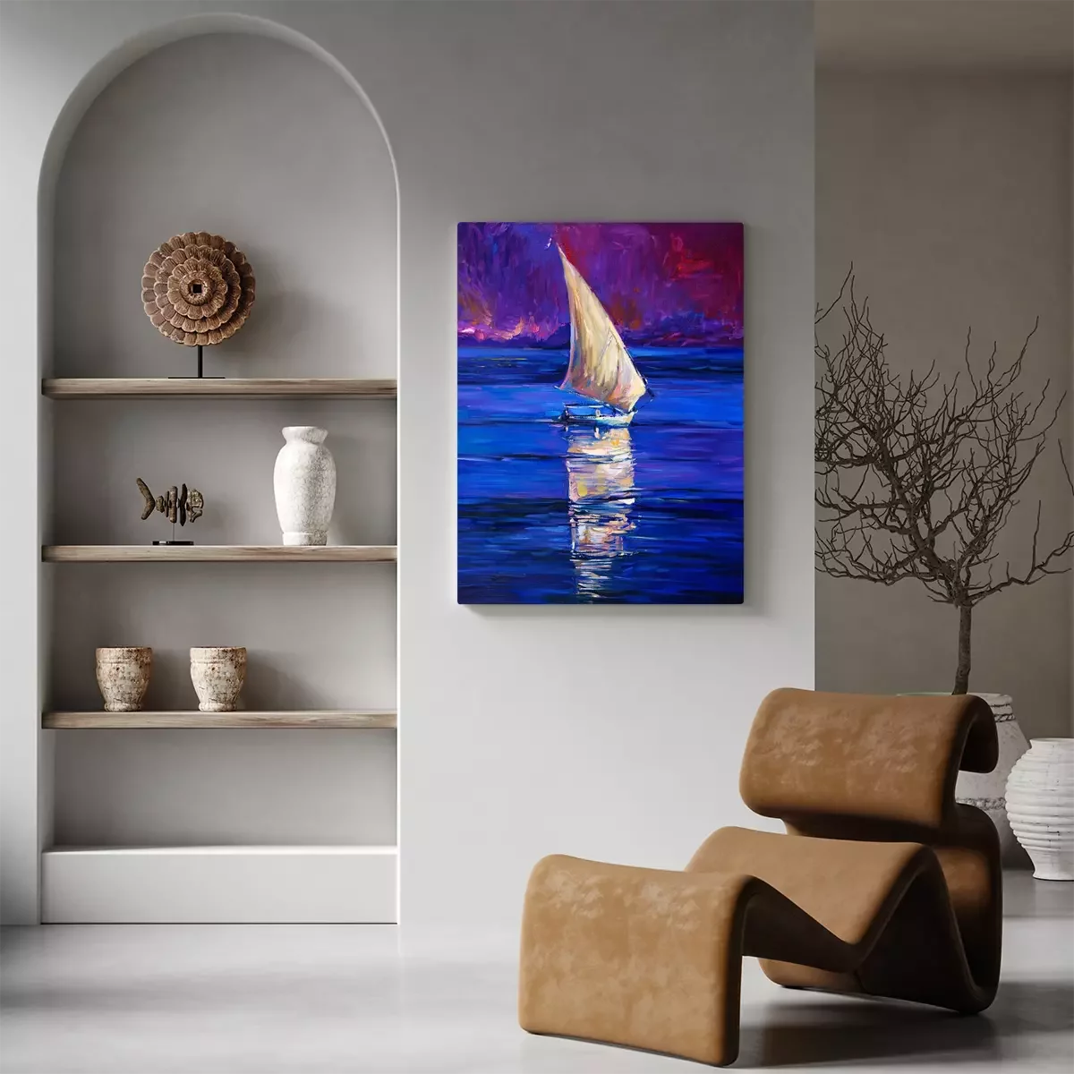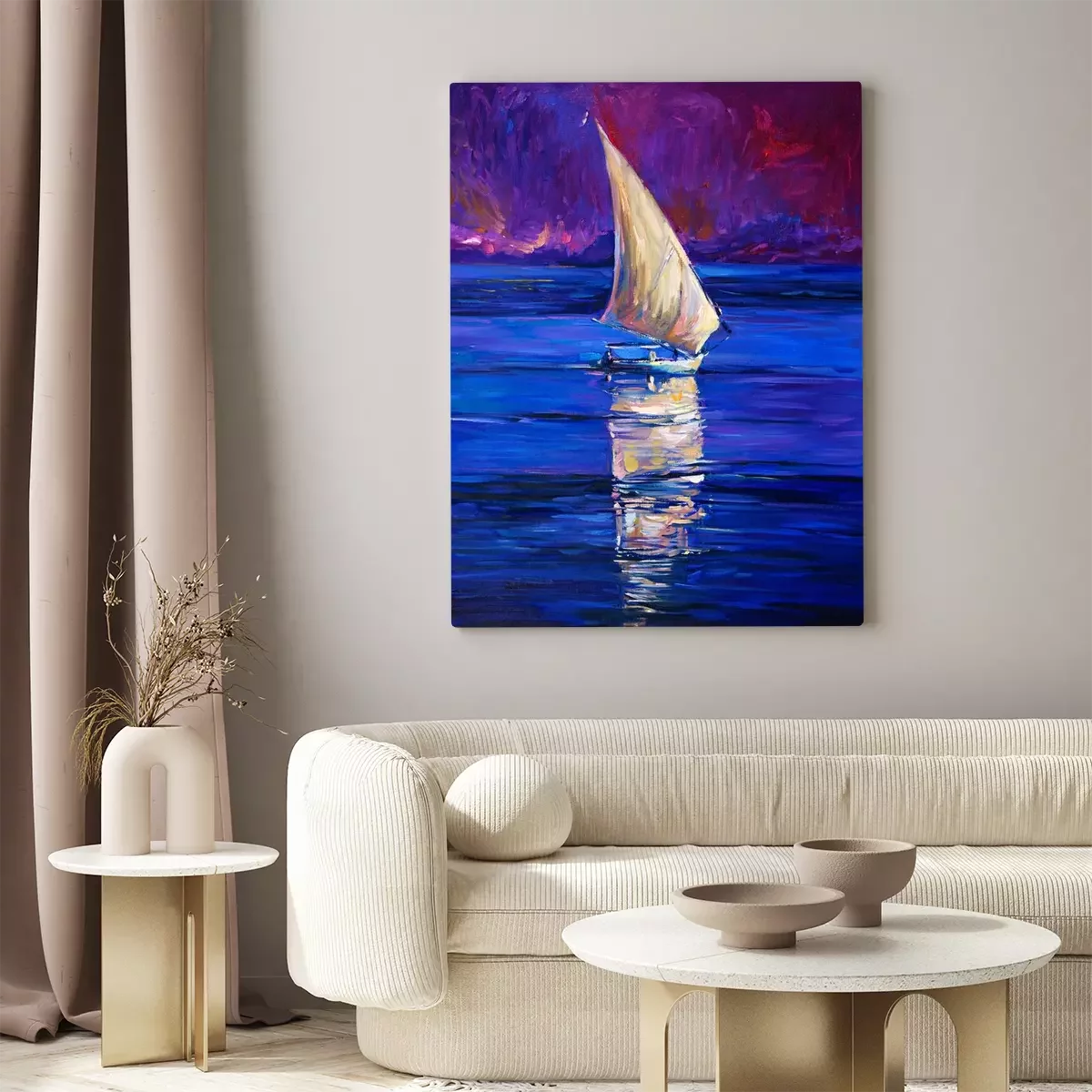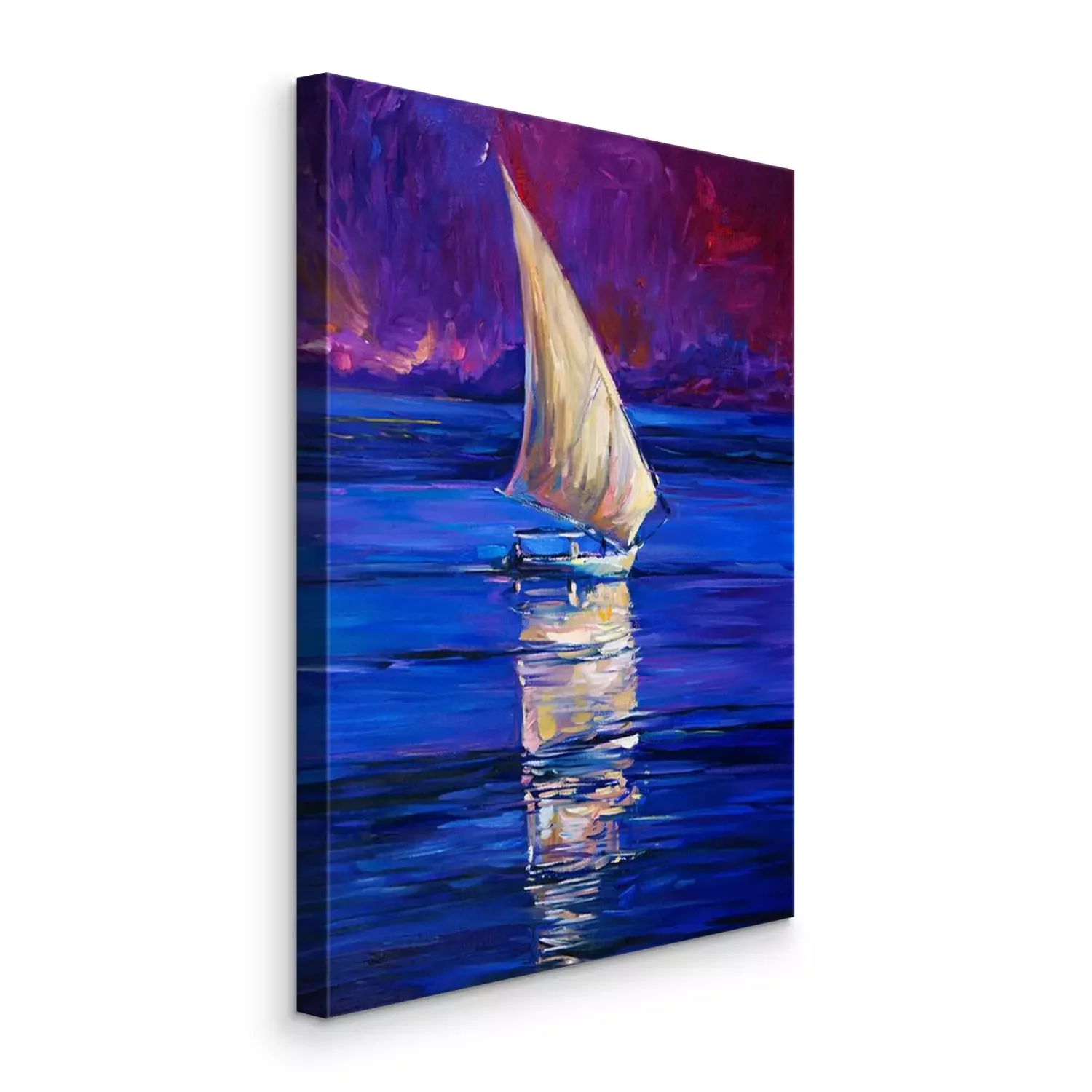 Canvas Witte zeilboot in de donkere wateren van de zee