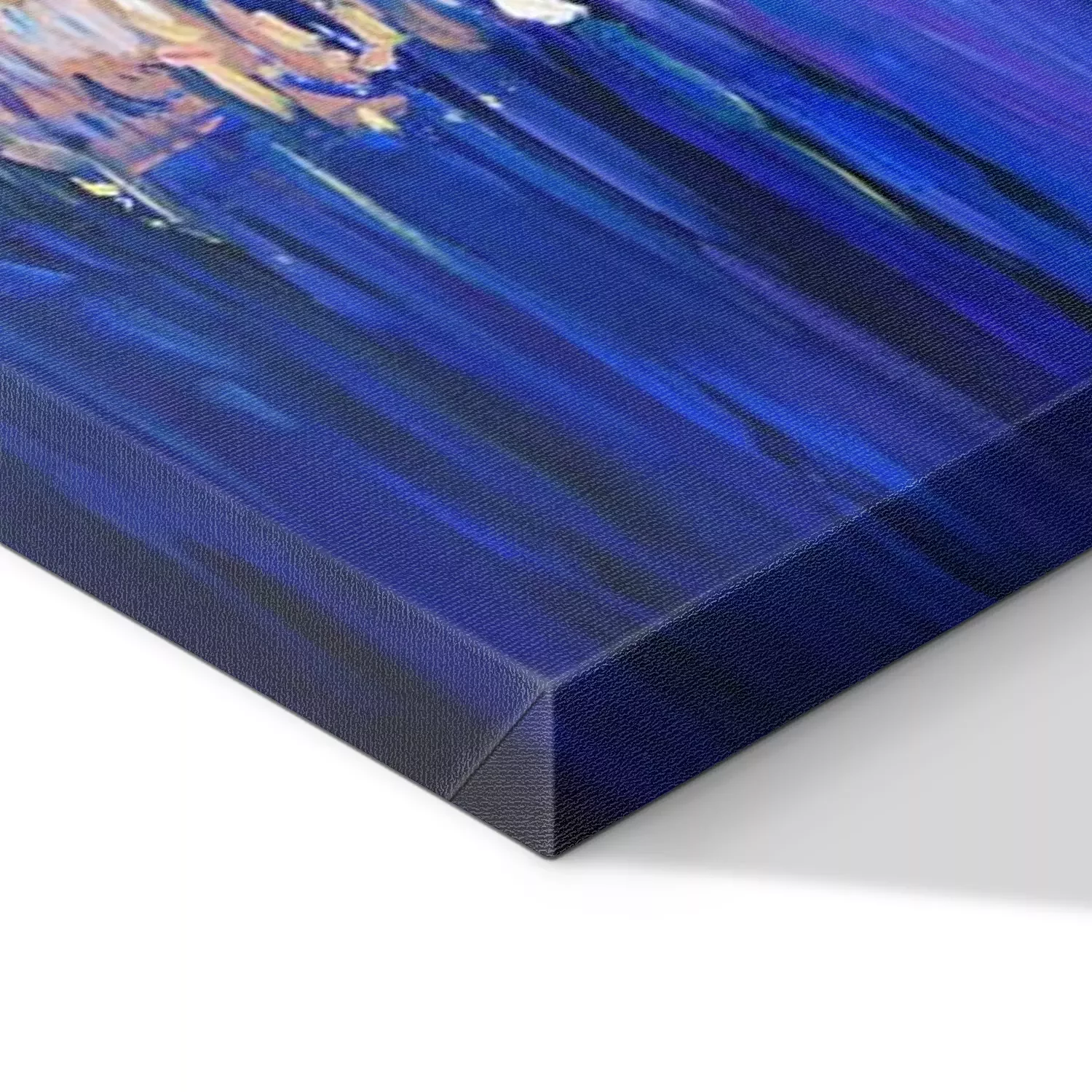 De print wordt aangebracht op hoogwaardig canvas dat op een schildersweefgetouw (spieraam) wordt gespannen. Omdat de print de zijranden bedekt, hoeft het ontwerp niet met een extra kader te worden omlijst. Wij raden ook composities aan die uit meerdere foto's bestaan en zo een coherente compositie vormen.
