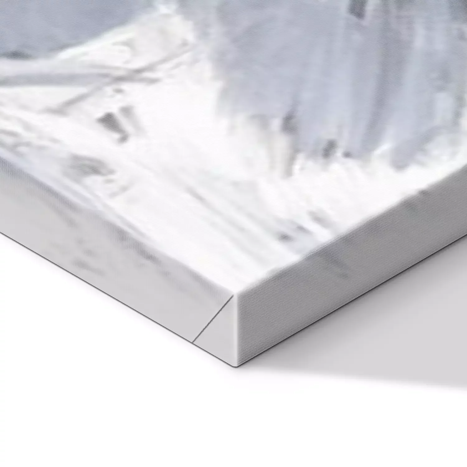 De print wordt aangebracht op hoogwaardig canvas dat op een schildersweefgetouw (spieraam) wordt gespannen. Omdat de print de zijranden bedekt, hoeft het ontwerp niet met een extra kader te worden omlijst. Wij raden ook composities aan die uit meerdere foto's bestaan en zo een coherente compositie vormen.