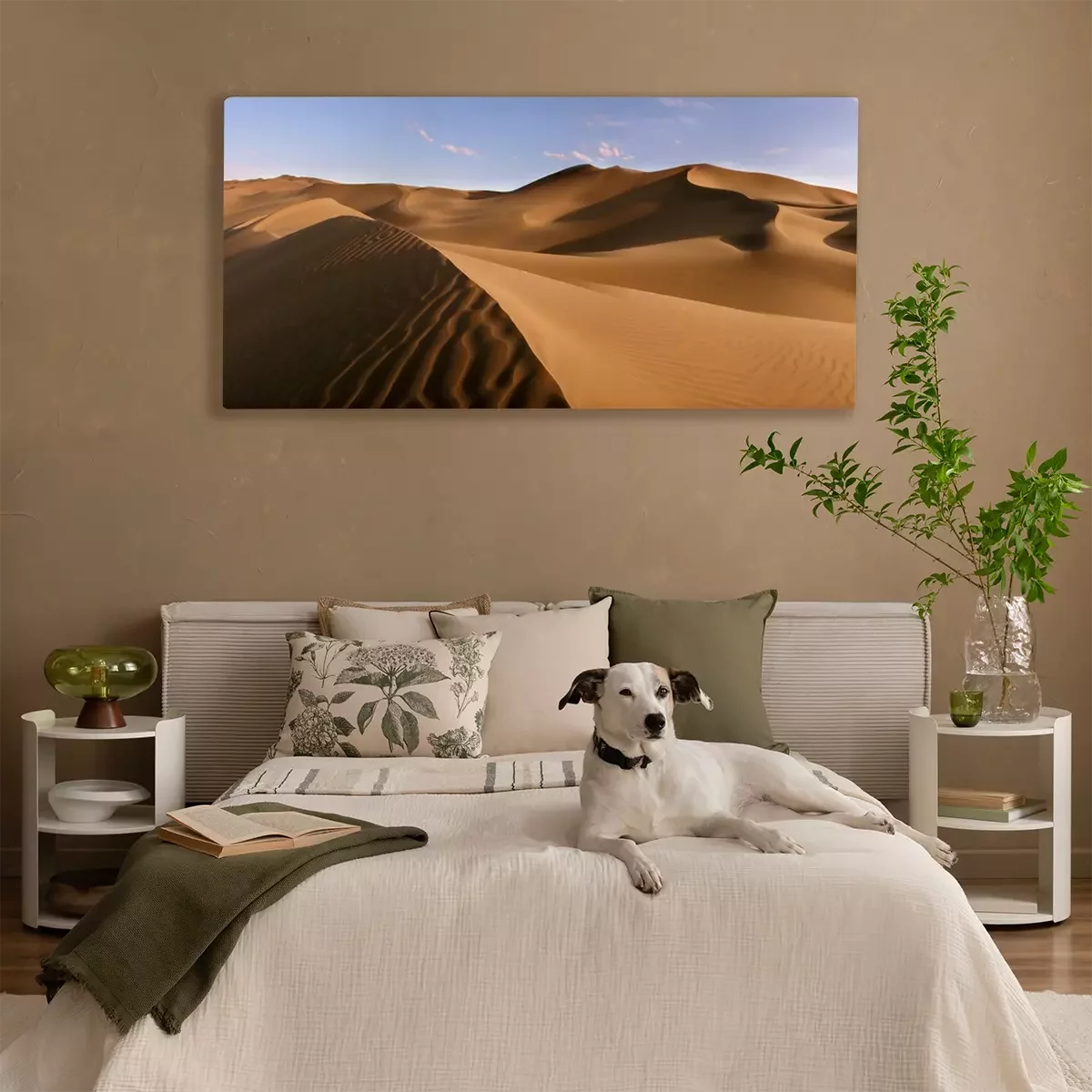 De print wordt aangebracht op hoogwaardig canvas dat op een schildersweefgetouw (spieraam) wordt gespannen. Omdat de print de zijranden bedekt, hoeft het ontwerp niet met een extra kader te worden omlijst. Wij raden ook composities aan die uit meerdere foto's bestaan en zo een coherente compositie vormen.