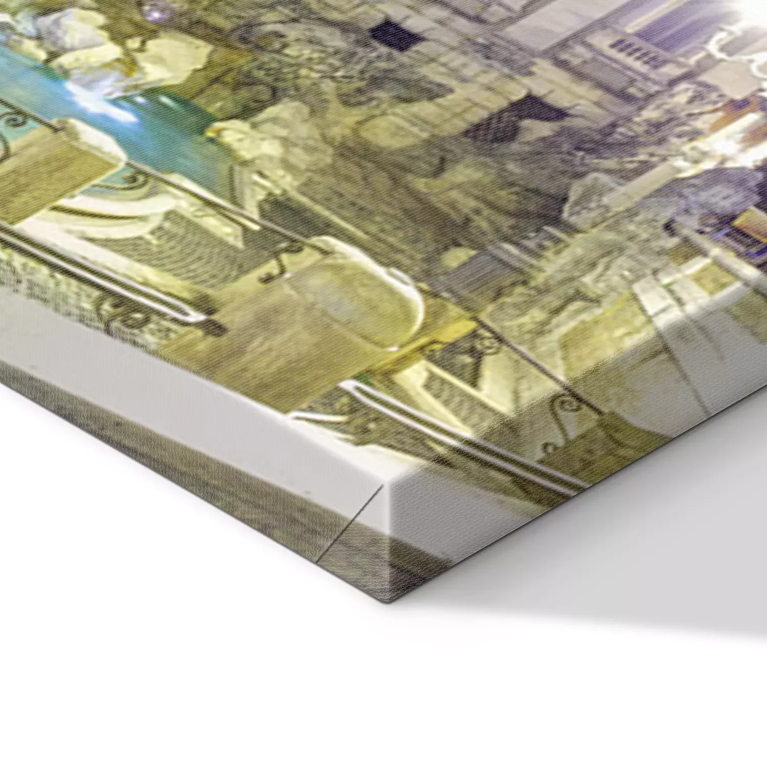 De print wordt aangebracht op hoogwaardig canvas dat op een schildersweefgetouw (spieraam) wordt gespannen. Omdat de print de zijranden bedekt, hoeft het ontwerp niet met een extra kader te worden omlijst. Wij raden ook composities aan die uit meerdere foto's bestaan en zo een coherente compositie vormen.