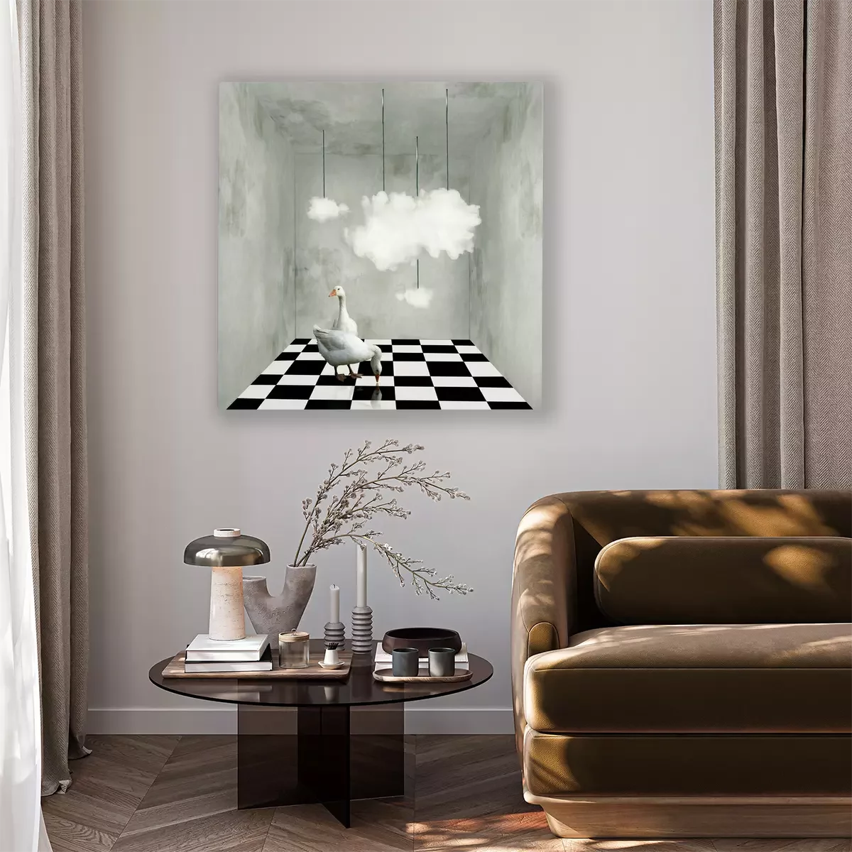 De print wordt aangebracht op hoogwaardig canvas dat op een schildersweefgetouw (spieraam) wordt gespannen. Omdat de print de zijranden bedekt, hoeft het ontwerp niet met een extra kader te worden omlijst. Wij raden ook composities aan die uit meerdere foto's bestaan en zo een coherente compositie vormen.